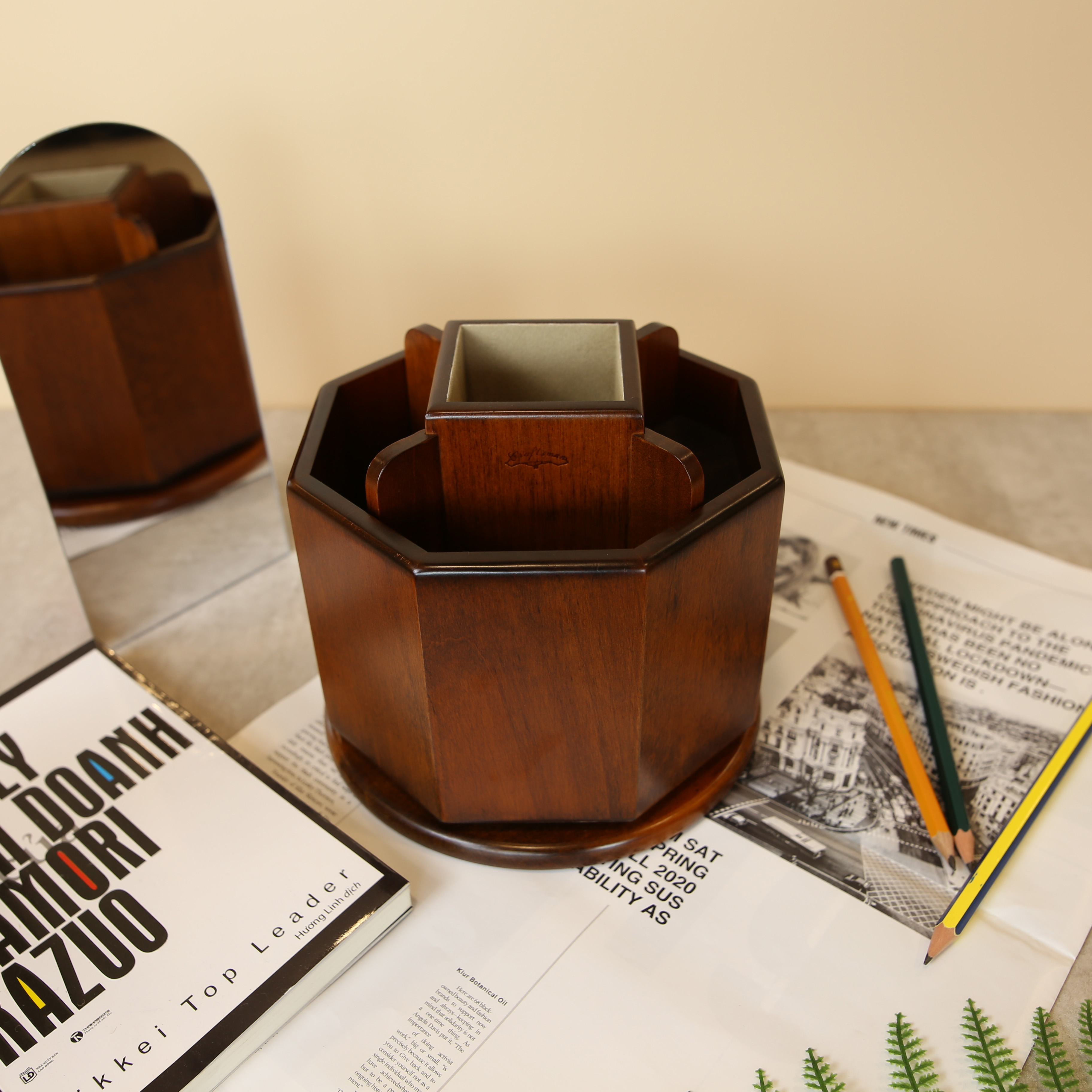 Hộp xoay bát giác chia làm 5 phần bên trong, có thể điều chỉnh độ sâu tùy ý.