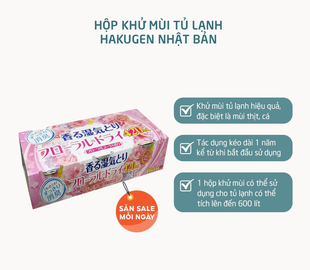 Hộp Hút Ẩm Và Làm Thơm Ngăn Tủ (Hương Hoa Thiên Nhiên) Hakugen Earth giúp hút ẩm và khử mùi hôi trong tủ quần áo, tủ giày, từ đó hạn chế sự hình thành của nấm mốc và mang đến hương hoa thơm dịu nhẹ. Hiệu quả hút ẩm và khử mùi hôi có thể kéo dài từ 2-6 tháng tùy vào độ ẩm trên thực tế. Mỗi hộp hút ẩm chia thành 3 hộp nhỏ, mỗi hộp nhỏ có thể chứa tối đa 420ml dịch. Tối đa sau 1 năm sử dụng phải thay mới sản phẩm.