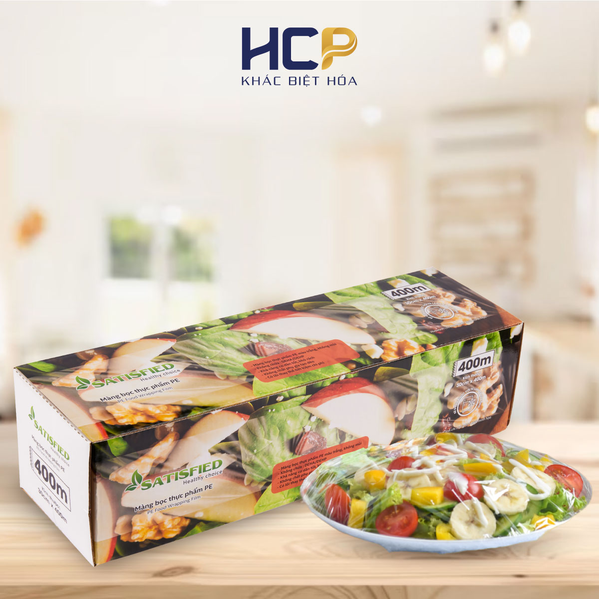 HCP chuyên sản xuất màng căng công nghiệp, màng bọc thực phẩm PE và cung cấp các sản phẩm gia dụng khác như giấy bạc nướng, giấy thấm dầu và găng tay TPE.