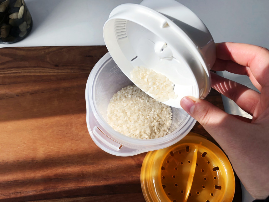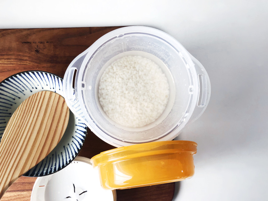 • Cho gạo vào hộp, vo sạch và ngâm trong khoảng 20~ 30 phút để cơm được mềm hơn.