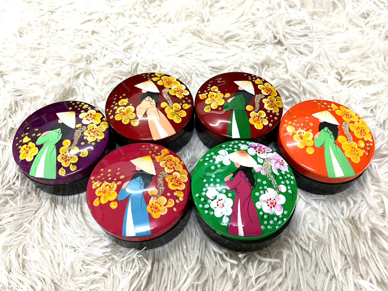 ✨Hộp phấn tròn sơn mài cao cấp Thanh Bình Lê size 10x5 cm đựng đồ vật nhỏ, bánh kẹo mứt, trang trí