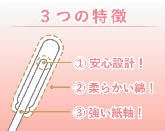 • Chất liệu: 100% Bông gòn tự nhiên mềm mại không gây đau rát khi sử dụng kết hợp Chitosan kháng khuẩn bề mặt bông, thân tăm làm bằng trục giấy thân thiện với môi trường