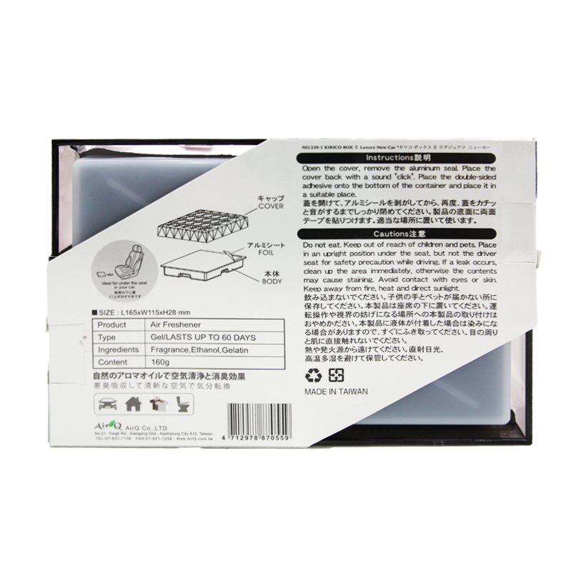 - Hộp thơm khử mùi AIR-Q KIRICO BOX II NO.239-1 Luxury New Car 160g được chế tạo bằng công thức đặc biệt với hương thơm sang trong quý phái