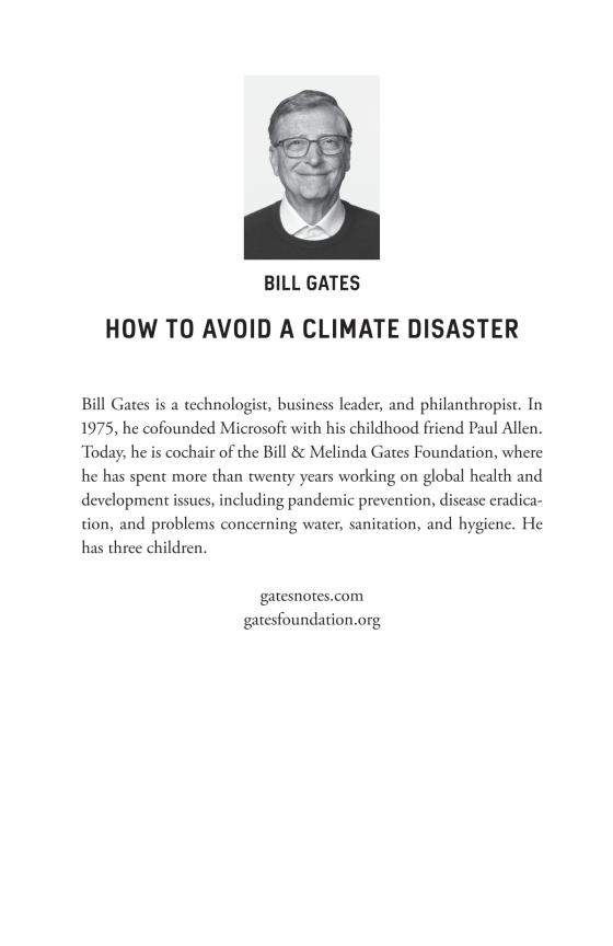 Bill Gates has spent a decade investigating the causes and effects of climate change. With the help of experts in the fields of physics, chemistry, biology, engineering, political science, and finance, he has focused on what must be done in to stop the planet's slide toward certain environmental disaster. In this book, he not only explains why we need to work toward net-zero emissions of greenhouse gases, but also details what we need to do to achieve this profoundly important goal.