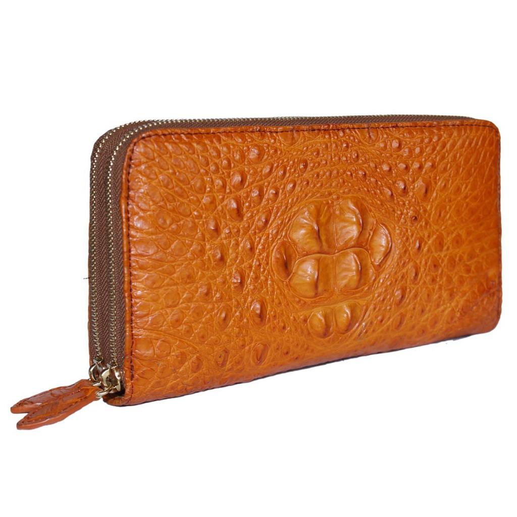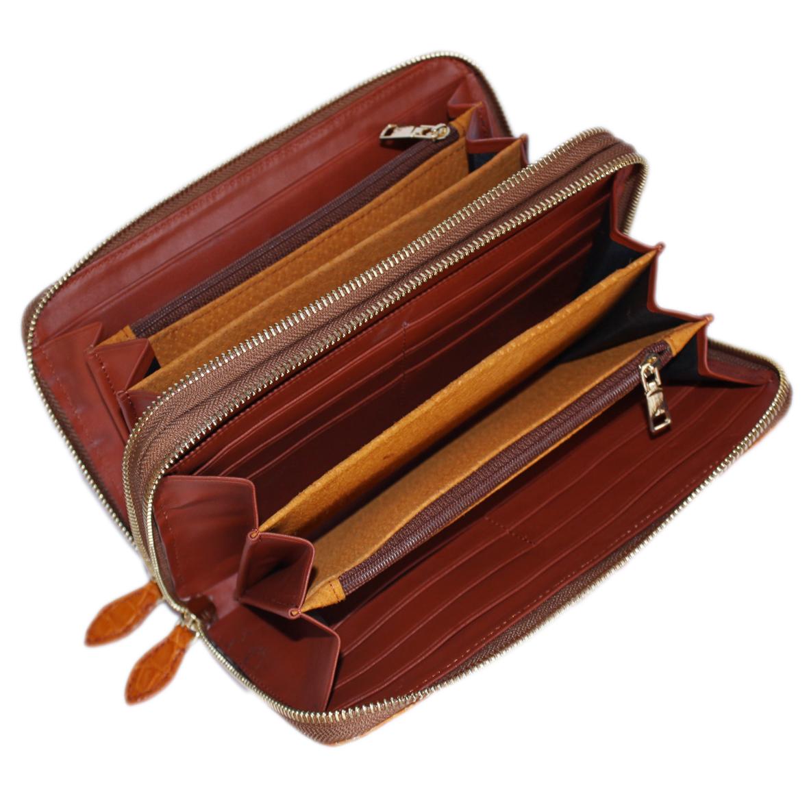 Ví/Bóp nữ da bò Huy Hoàng vân cá sấu nhiều ngăn màu nâu 3134
