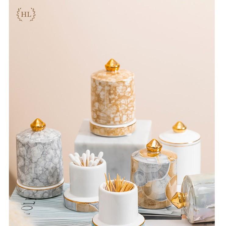 ✨HŨ TĂM SỨ 3D | Lọ Đựng Tăm Vân Đá 3D Chất Liệu Sứ Cao Cấp 2022 | Hũ sứ có nắp đậy vân đá cao cấp kẻ vàng kim