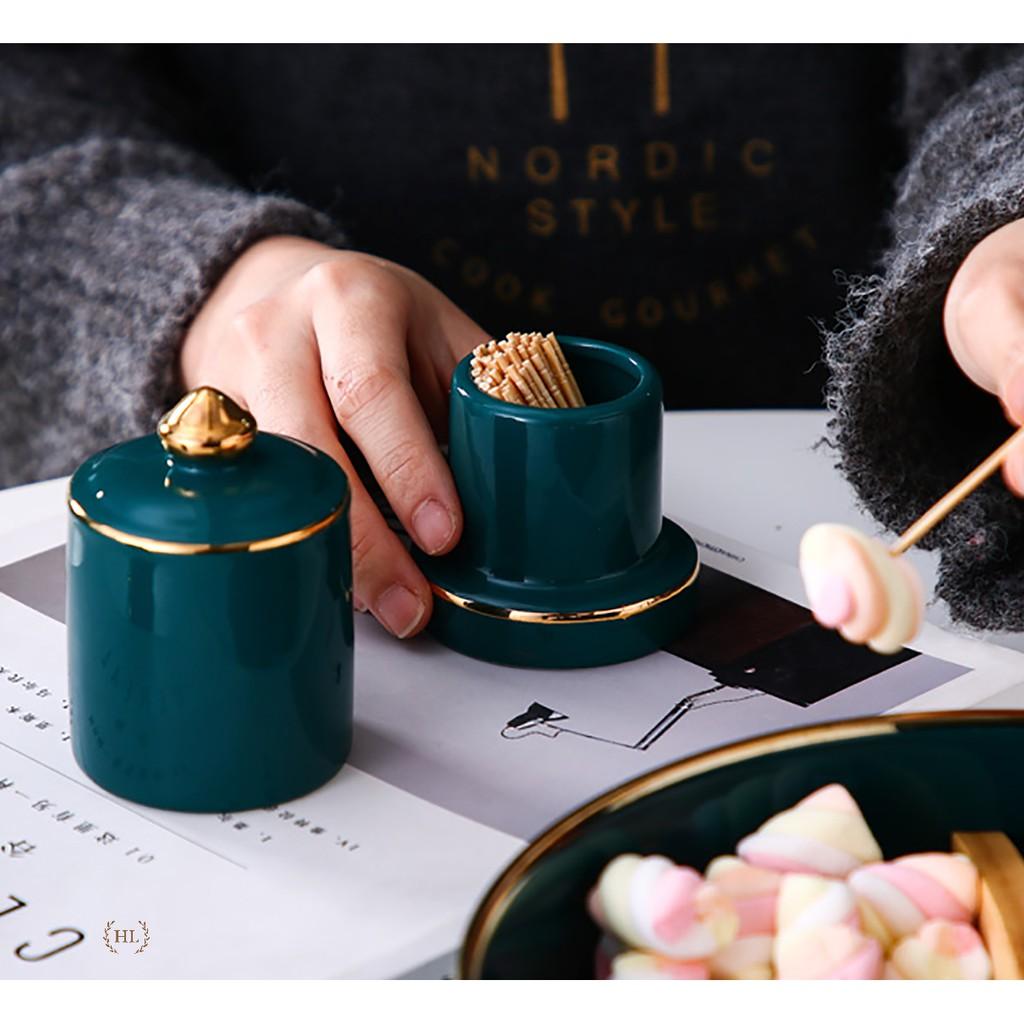 Hũ tăm bằng sứ cao cấp Màu sắc sang trọng Ngoài công dụng chính còn là phụ kiện trang trí trên bàn ăn