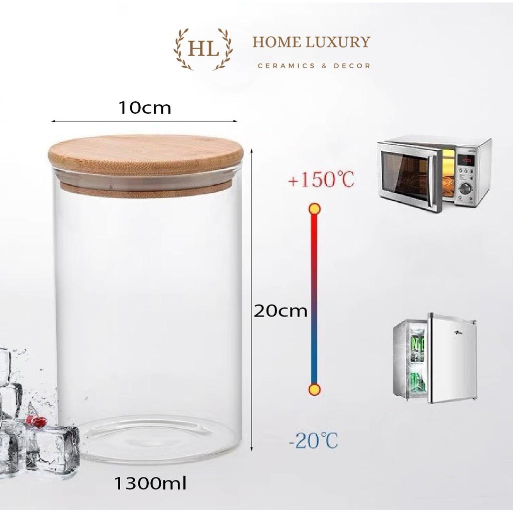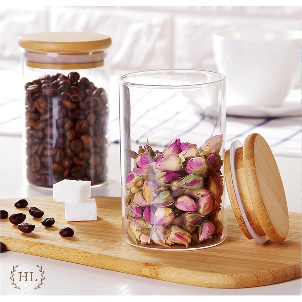 ✨Hũ Thủy Tinh Kín Hơi, Chống Tràn Đựng Bánh Kẹo Và Gia Vị Trang Trí | LỌ TRE TRÒN THỦY TINH NẮP GỖ TRE