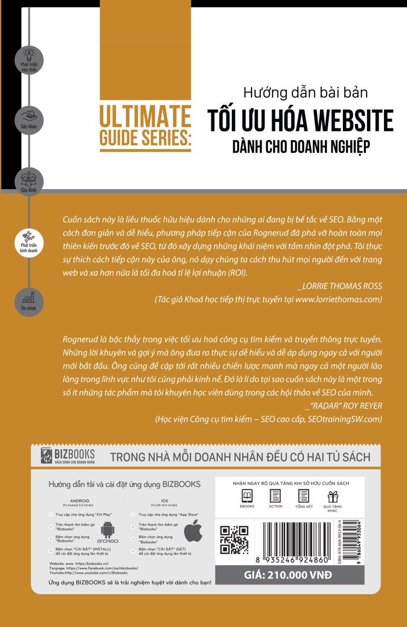 Trang web của bạn sẽ load nhanh như gió và có hàng nghìn lượt khách hàng ghé thăm mỗi ngày. Chỉ cần tỷ lệ chuyển đổi là 1% bạn sẽ sở hữu một lượng khách hàng đáng mong chờ với chi phí 0 đồng. Những nội dung chính sẽ có trong cuốn sách: