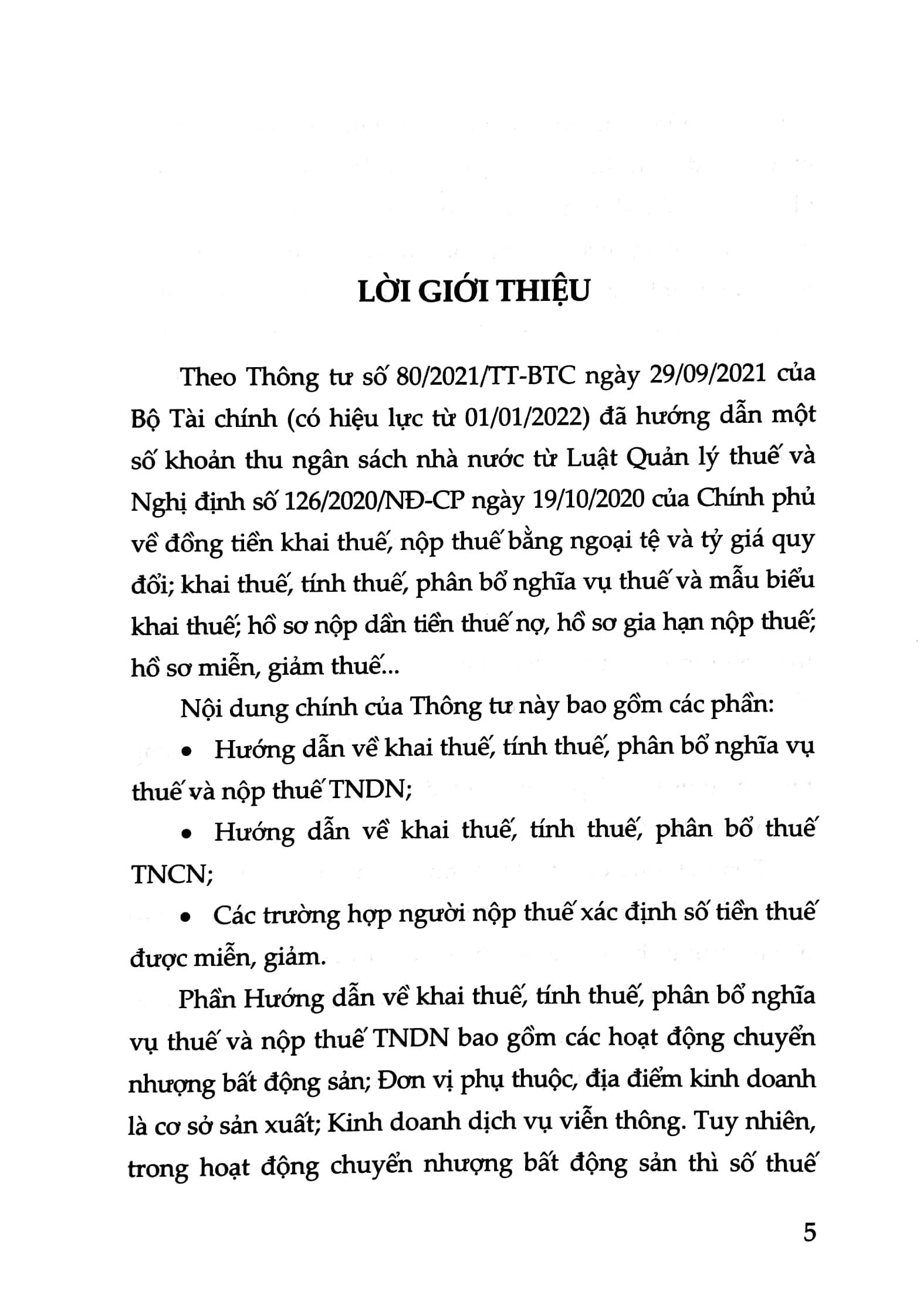 Cuốn sách Hướng dẫn thực hiện các quy định về Kê khai, Hoàn, Bù trừ tiền thuế - Các doanh nghiệp cần biết (theo Thông tư số 80/2021/TT-BTC của Bộ Tài chính ngày 29/9/2021) là