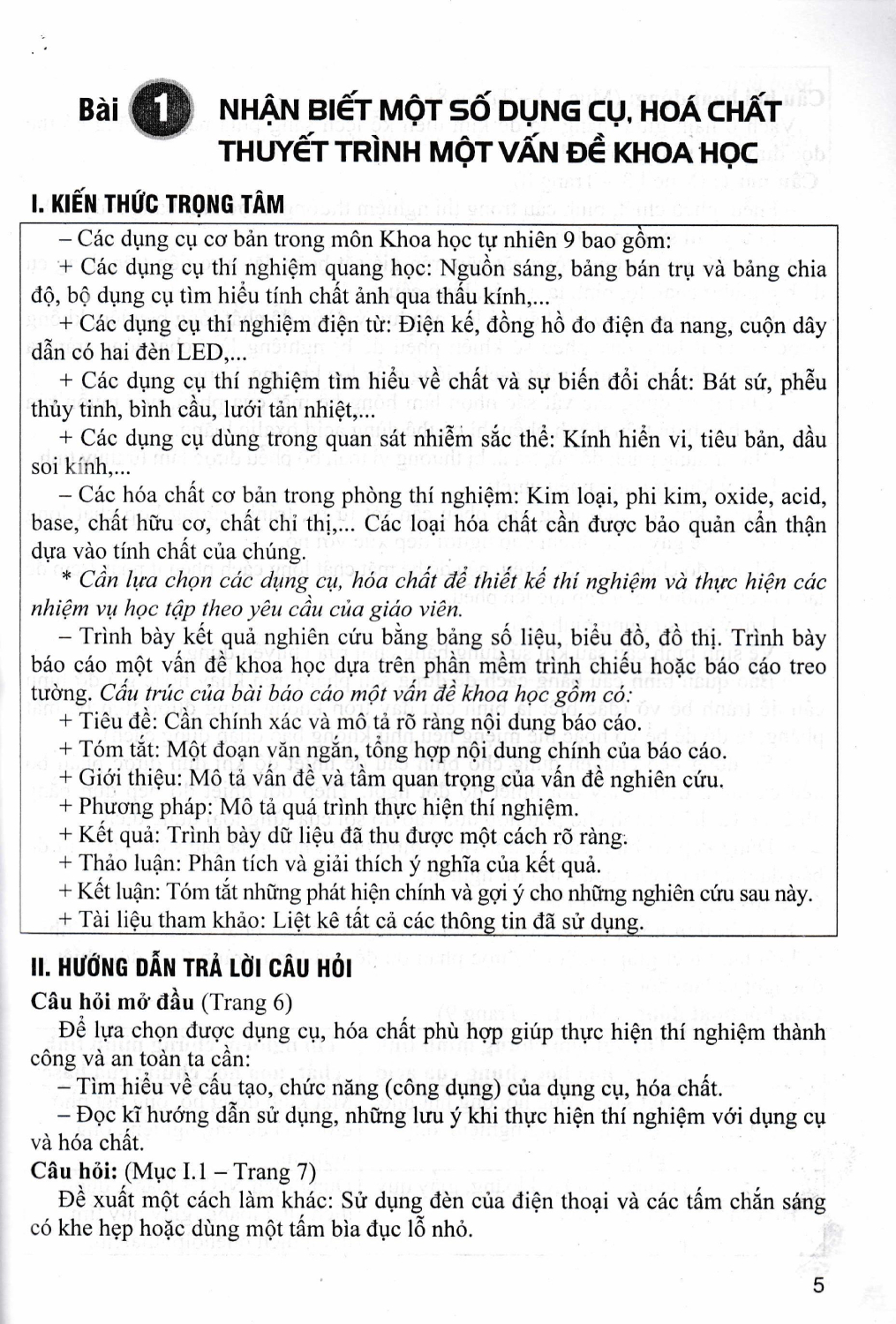 HƯỚNG DẪN TRẢ LỜI CÂU HỎI – KHOA HỌC TỰ NHIÊN 9
