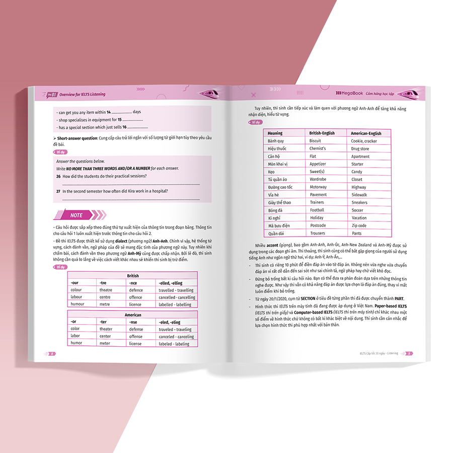 • Cung cấp kiến thức quan trọng và các bước làm bài cụ thể cho từng dạng bài IELTS Listening.