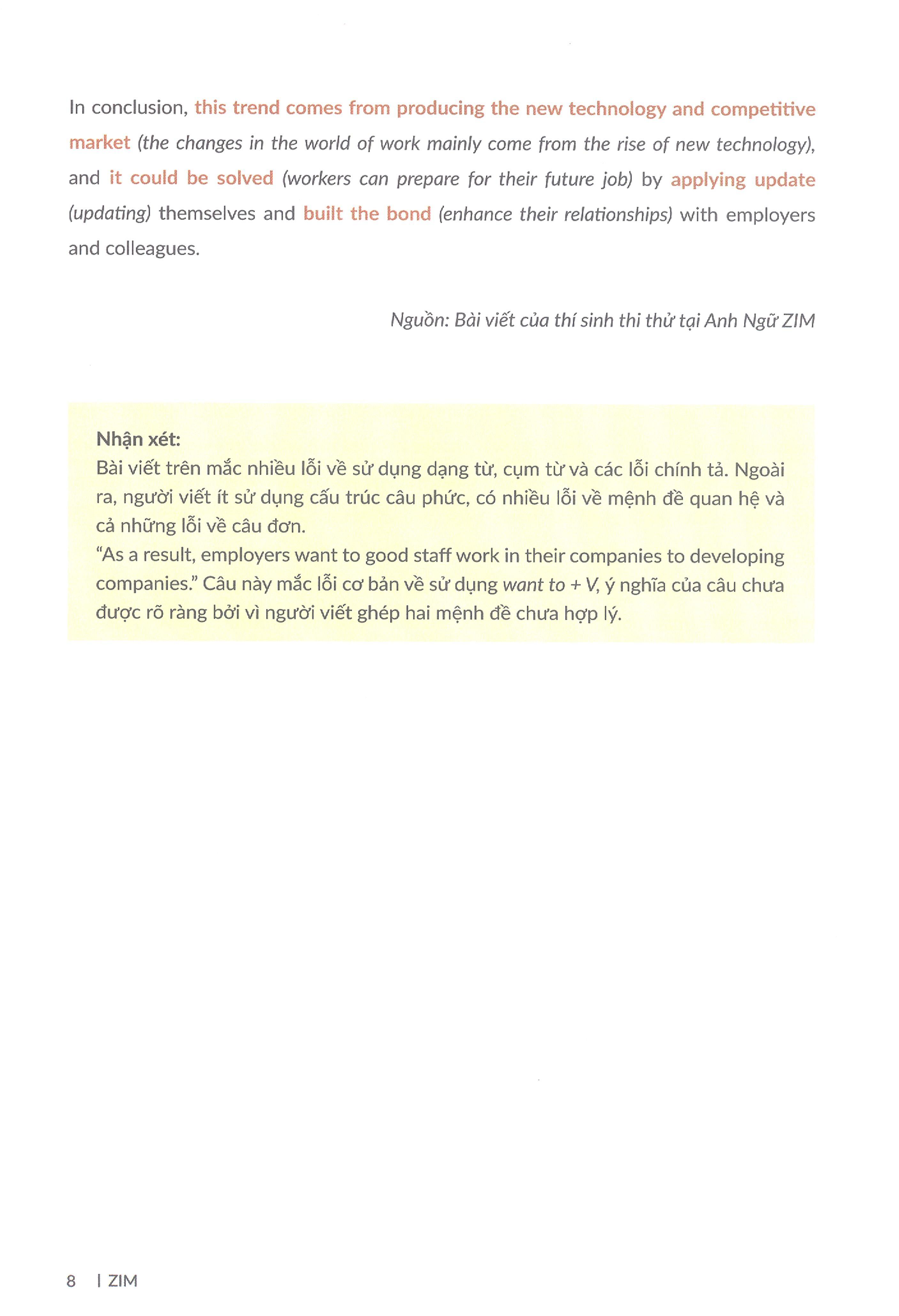 IELTS Special Journal là ấn phẩm được đội ngũ chuyên gia luyện thi IELTS tại Anh Ngữ ZIM biên soạn với mục đích giúp người học có cái nhìn cận cảnh hơn về độ khó của đề thi kỹ năng Nói và Viết cũng như cung cấp nhiều phương án xử lý các đề thi cụ thể qua việc phân tích đề và lập dàn ý. Nội dung chính của sách bao gồm: