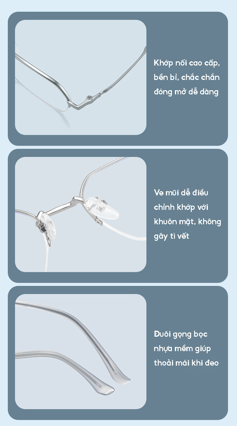 • Màu sắc gọng: Đen, Bạc, Ghi, Vàng Hồng