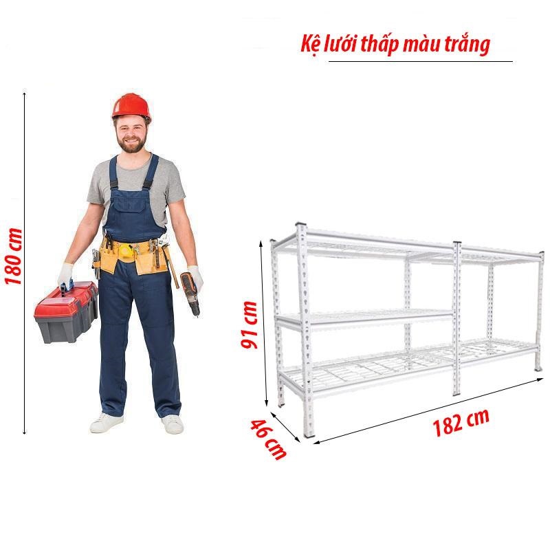 ✨Kệ đa năng tấm lưới màu Trắng thấp CSPS 182cm Ngang x 46cm Rộng x 91cm Cao