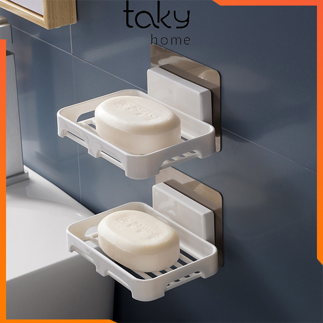 Giá Nhựa Trắng Để Xà Phòng Dán Tường Nhà Tắm Với Miếng 3M Siêu Chắc, TakyHome, Tiện Ích Giúp Cục Xà Bông Tắm Nhanh Khô Và Sạch Sẽ - Miếng Dán Tường Chịu Lực -