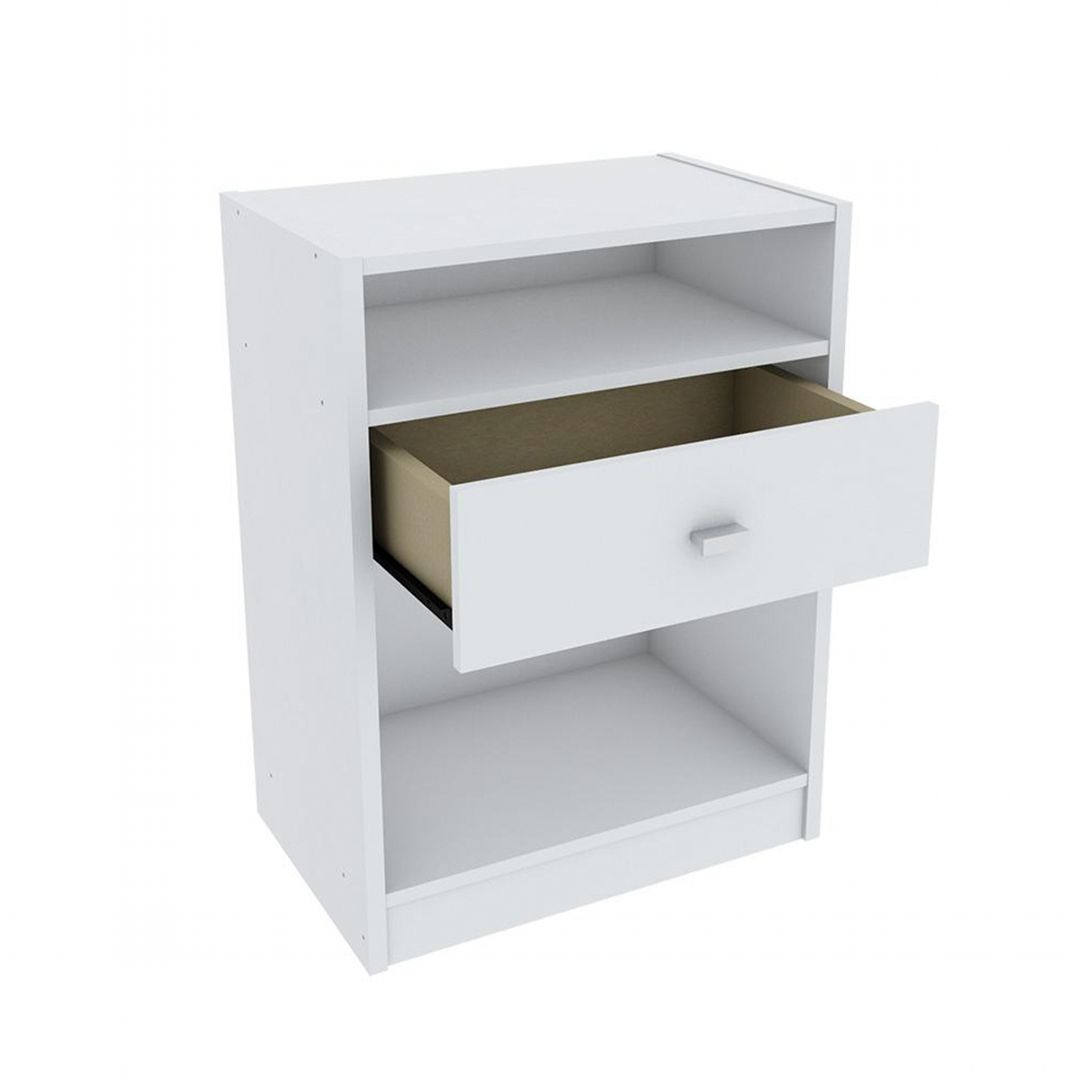 - Kệ tủ đầu giường hình vuông có hộc kéo - Chất liệu: ván gỗ HMR (viết tắt của High Moisture Resistence) lõi xanh chống ẩm, chống thấm nước phủ melamine, phun sơn trắng bóng