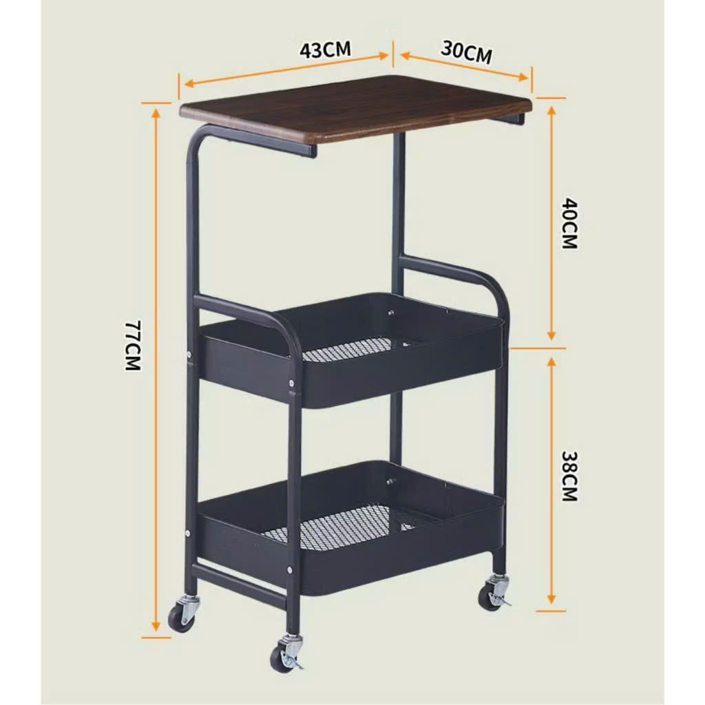 Thiết kế: 3 tầng tiện dụng với hai ngăn giữa + một mặt bàn gỗ trên cùng
