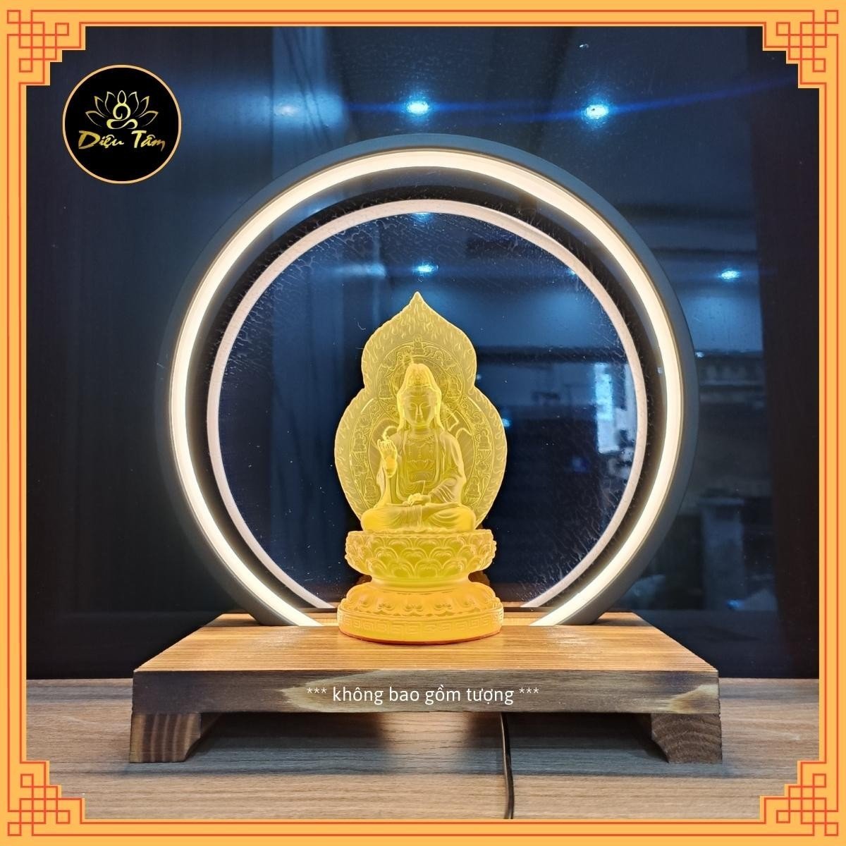- Công dụng: đèn led vòng trong giúp ánh sáng tập trung vào chủ thể 360 độ giúp làm nổi bật chủ thể bên trong đèn. Kệ đèn led tròn được ứng dụng để trang trí tượng phật như tượng phật quan âm , tượng phật dược sư, hoàng thần tà Và nhiều tượng phật khác, thác khói trầm hương, tiểu cảnh trang trí decor bàn thờ, ban thần tài, đồ thờ cúng ,đồ phong thủy, bàn trà giúp làm nổi bật chủ thể trong đèn,