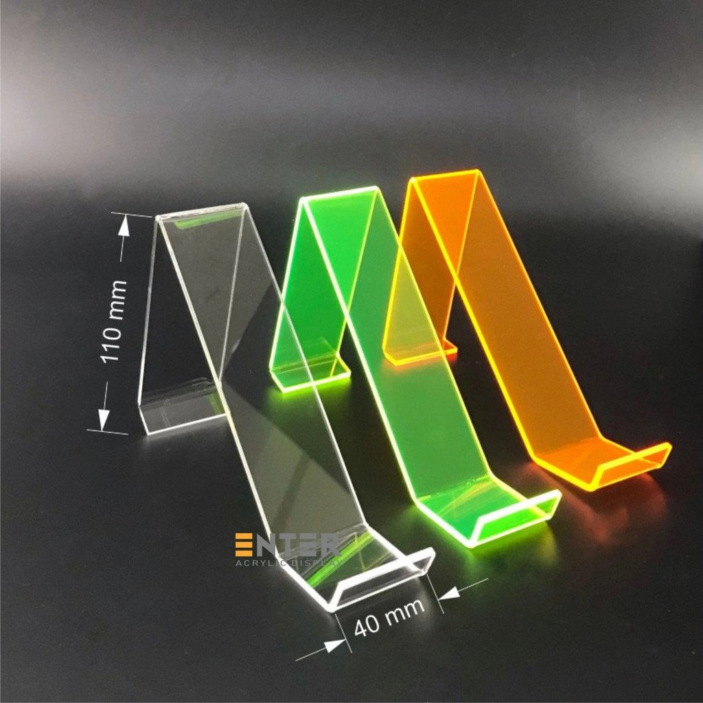 Quy cách: 40 x 110mm Đơn vị tính: Cái Đóng gói: 1 Xuất xứ: Việt Nam Chất liệu: Được làm từ mica trong suốt chất lượng cao không bị đục, mờ, rạn nứt. Công dụng: Dùng để trưng bày giày, dép sandal, giày cao gót...