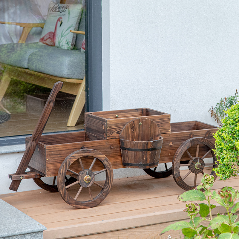 ✨Kệ gỗ để chậu hoa cây cảnh trang trí nhà cửa sân vườn có bánh xe di chuyển tiện lợi kiểu dáng vintage cổ điển màu sắc tự nhiên, thân thiện với môi trường