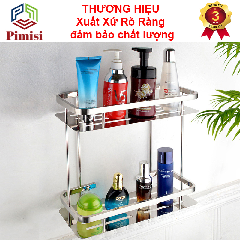 - Kiểu: Kệ nhà tắm hình chữ nhật 1 tầng hoặc 2 tầng. Kệ nhà tắm để đồ gắn tường Pimisi PK-026T Xuất Xứ Kệ Nhà Tắm Để Đồ INOX 304: