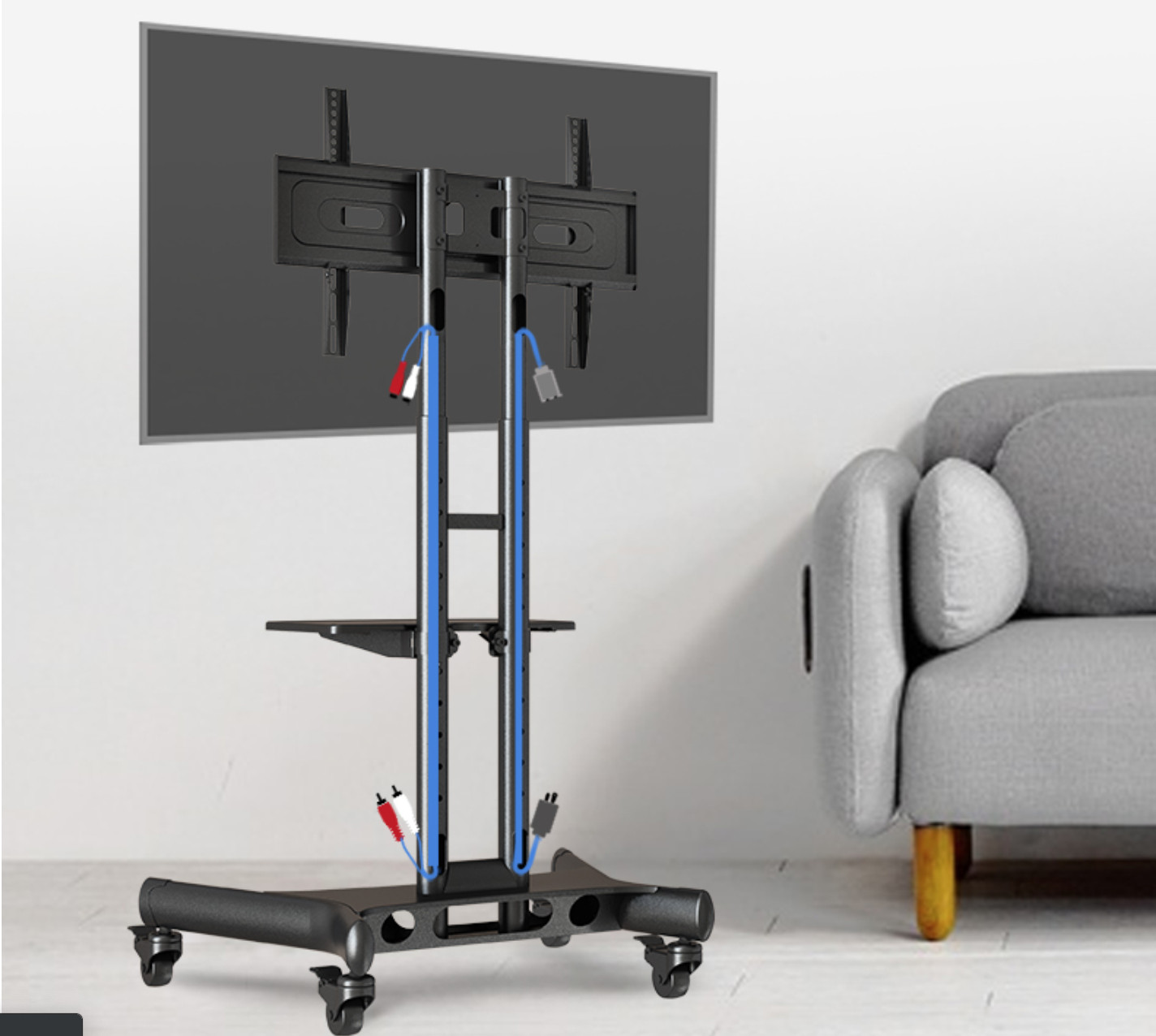 Đây là chiếc giá treo tivi di động lớn được thiết kế theo mô đun mới nhất với màu đen mang đến cho bạn một cái nhìn hoàn toàn mới với hai cột cực cứng