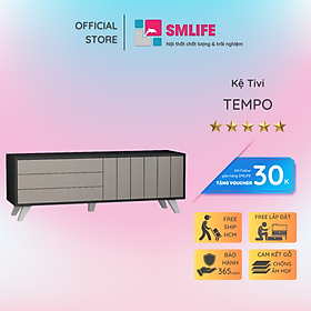 Mua tại TiktokKệ tivi gỗ Tempo là sự bổ sung hoàn hảo cho bất kỳ phòng khách nào. Được thiết kế với 3 ngăn kệ kèm cửa gấp bên dưới, kệ tivi Tempo mang đến cho bạn rất nhiều không gian để tổ chức vật dụng như tạp chí, âm ly … an toàn. Sử dụng vật liệu ván ép công nghiệp MDF chống ẩm phủ Melamine cao cấp giúp kệ gỗ tivi SMLIFE có độ bền cao, chống trầy và chống ẩm rất tốt. Bạn có thể tự lắp đặt sản phẩm dễ dàng với các phụ kiện và hướng dẫn đi kèm.