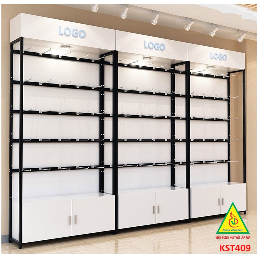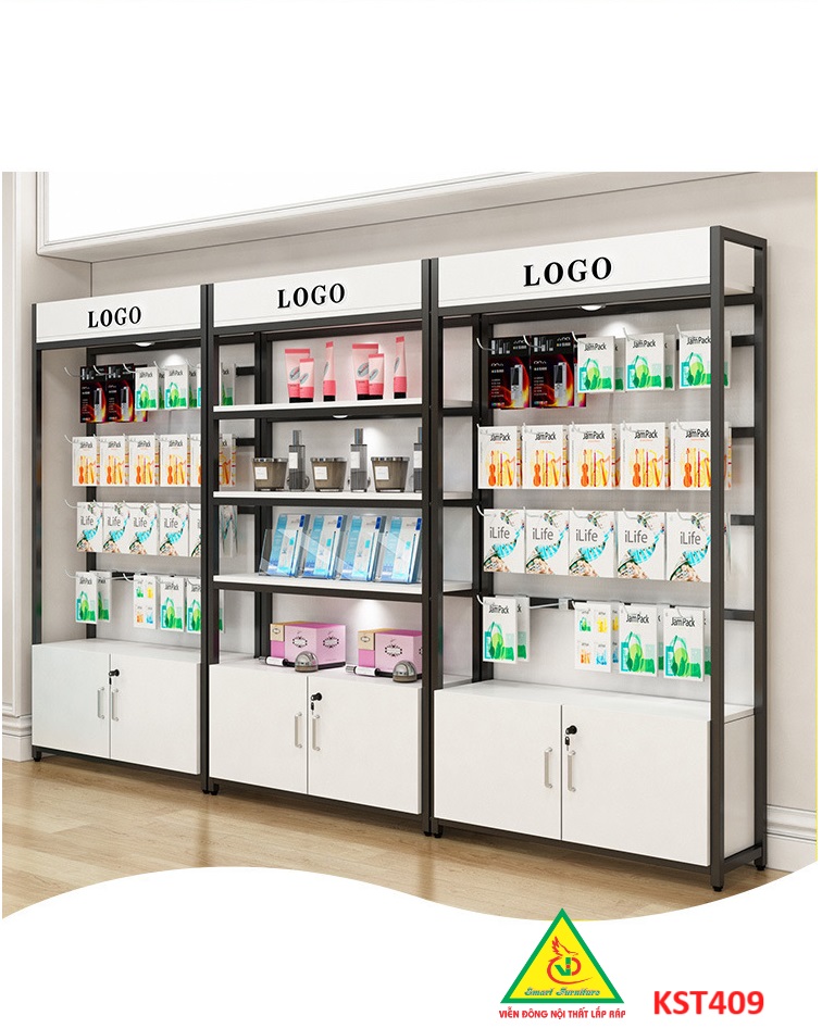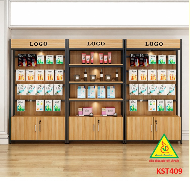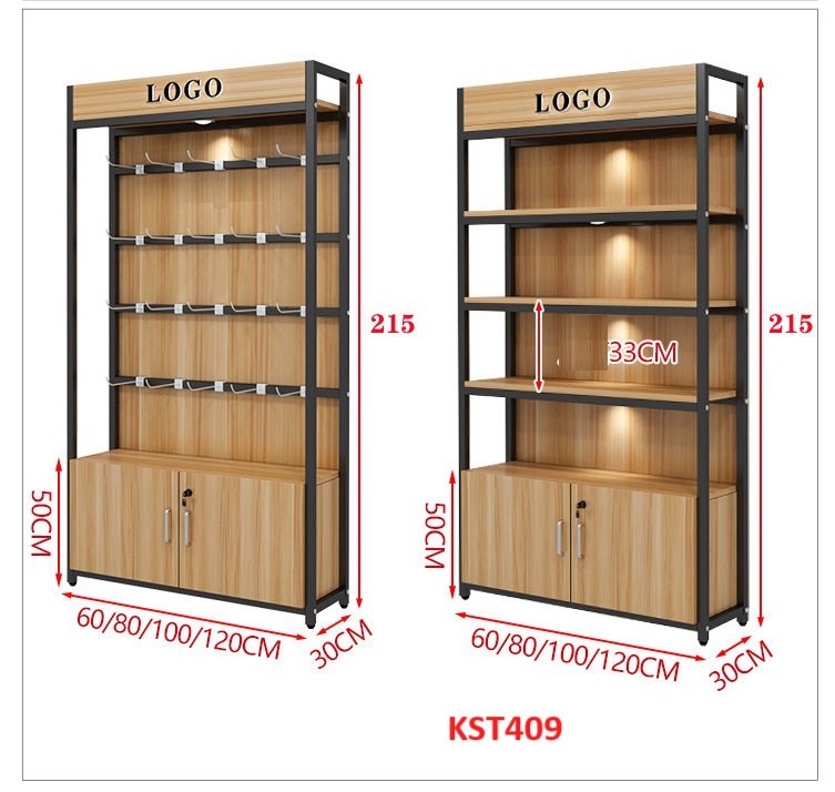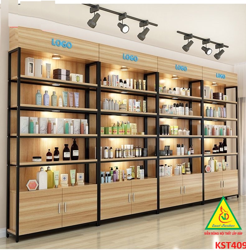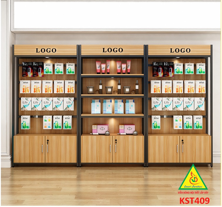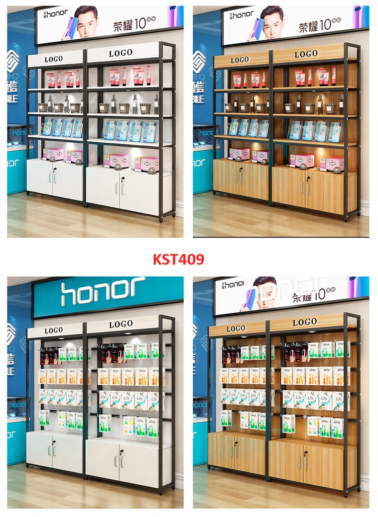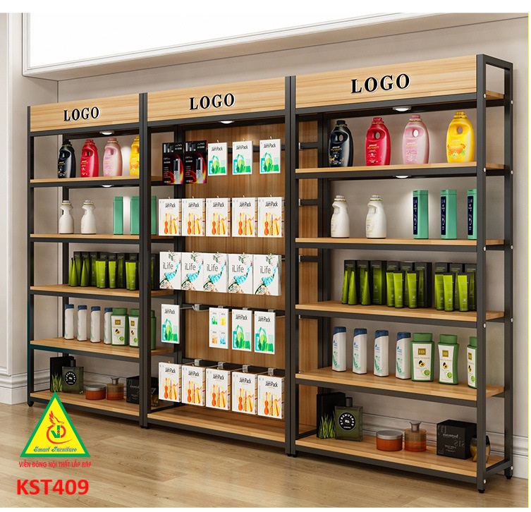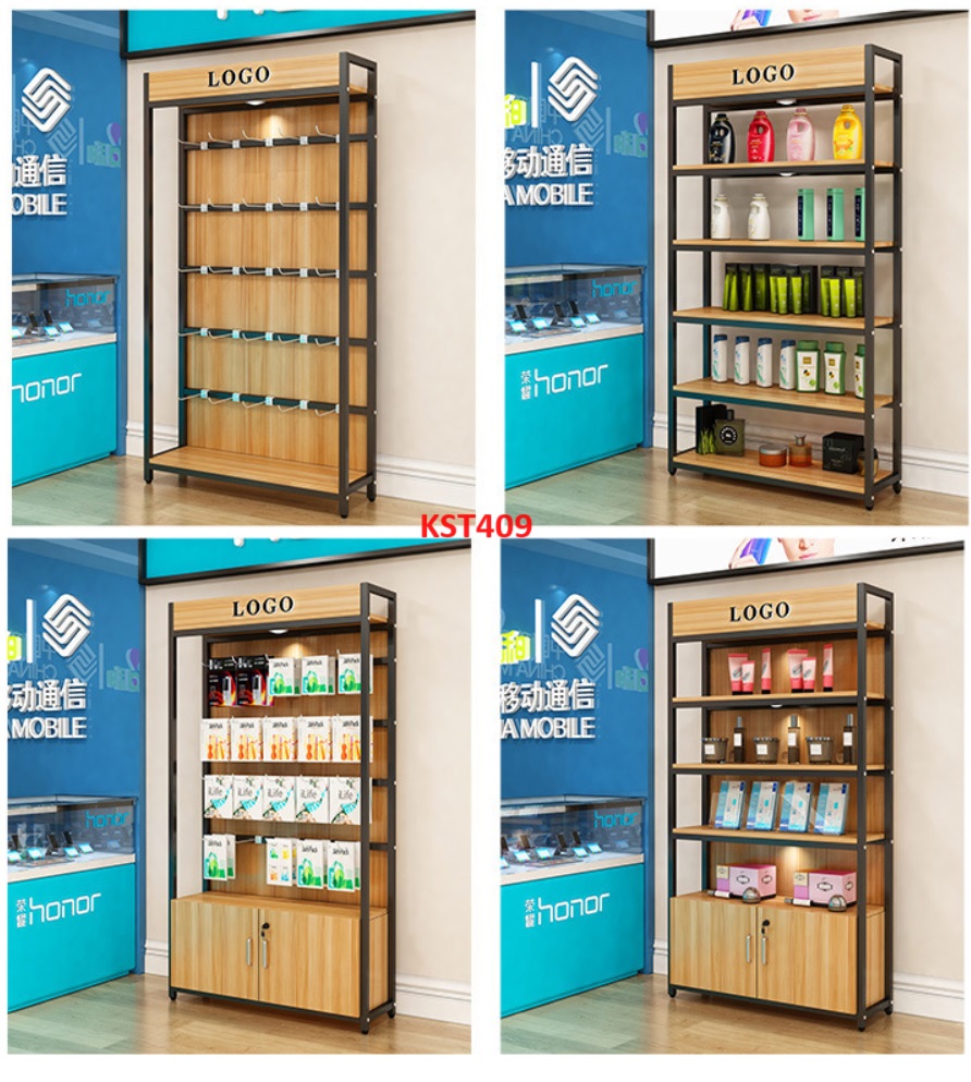 Kệ trưng bày sản phẩm, hàng hóa , kệ trang trí khung sắt mặt gỗ có nhiều kiểu dáng cho khách hàng lựa chọn theo nhu cầu riêng của từng cửa hàng như: