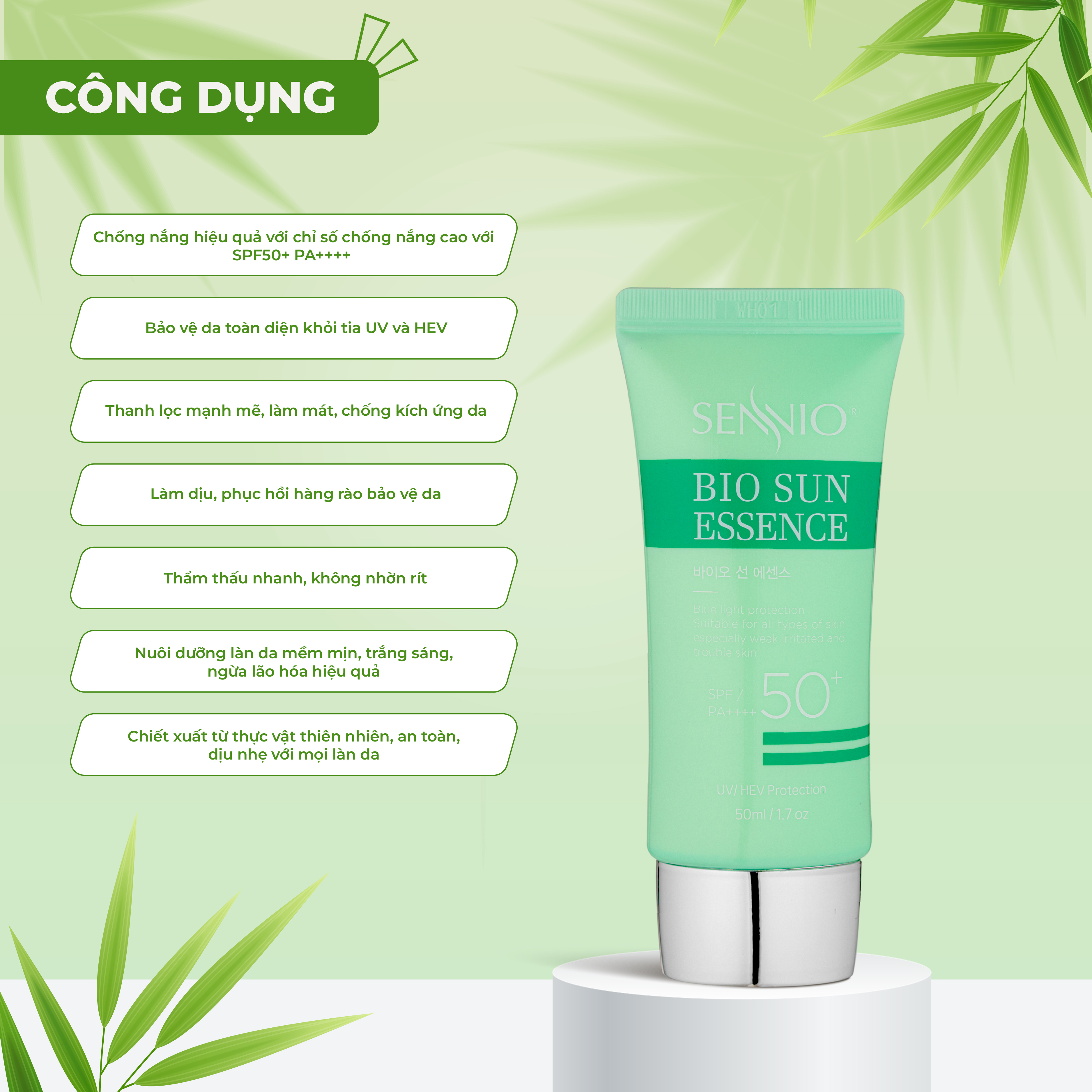 ✨Kem chống nắng Sennio Bio Sun Essence dạng tinh chất dưỡng trắng da chống ánh sáng xanh 50ml SNO 825