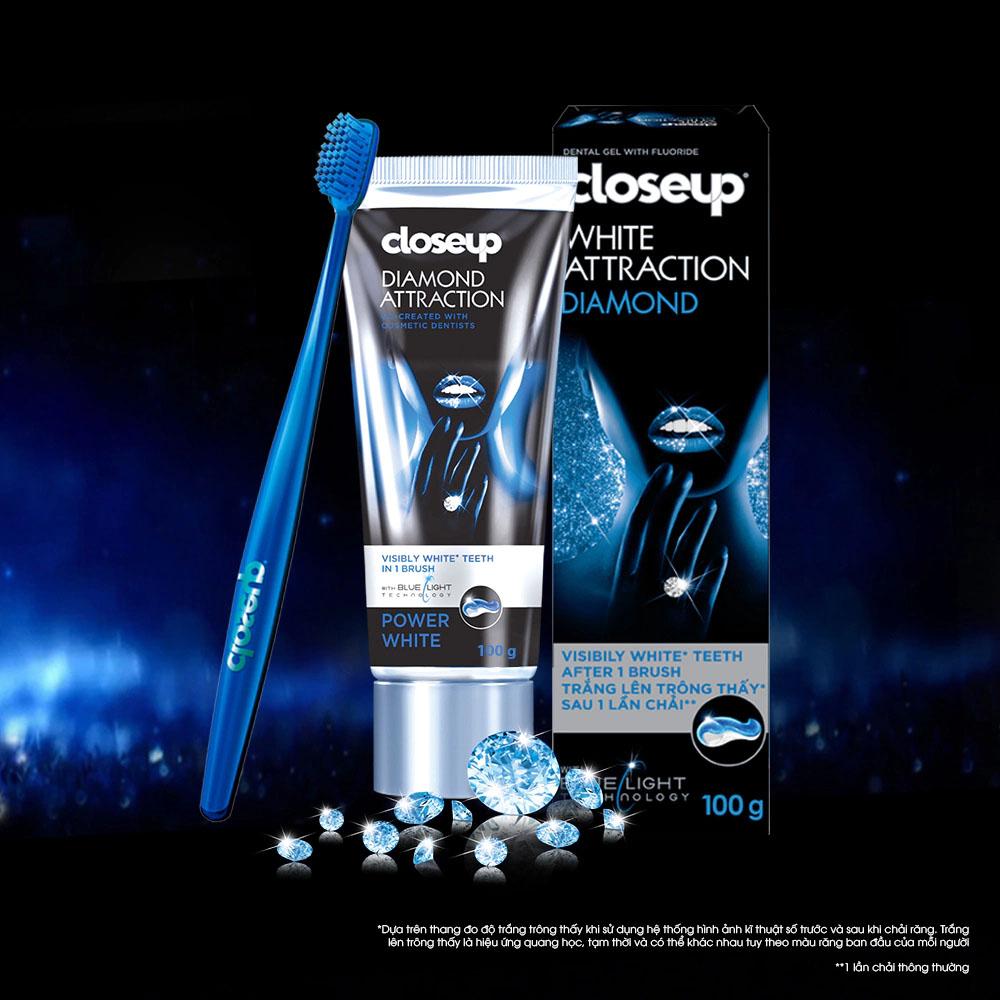 Kem Đánh Răng Dạng Gel Closeup White Attraction Diamond Trắng Sáng 100g Kem Đánh Răng Dạng Gel Closeup White Attraction Diamond Trắng Sáng 100g là sản phẩm làm trắng răng thế hệ mới mang đến