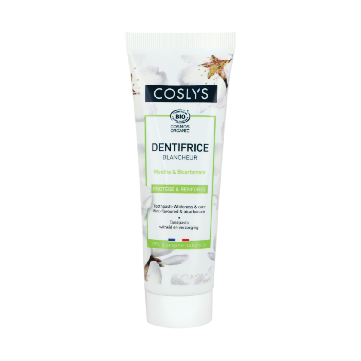 Chứng nhận hữu cơ Ecocert Chứng nhận Hữu cơ bởi Cosmos Organic ️Thương hiệu: Coslys - Pháp Kem đánh răng hữu cơ làm trắng răng hương hoa Coslys với mùi hương hoa cỏ ngọt, thành