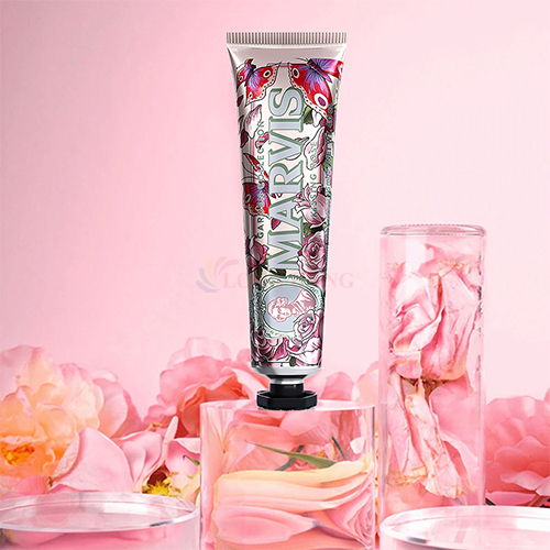 Kem Đánh Răng Marvis Kissing Rose 75ml Thành Phần Chính Và Công Dụng: - Hương hoa hồng quyến rũ hòa quyện cùng hương bạc hà châu Âu tươi mát giúp khử mùi đồ ăn, làm