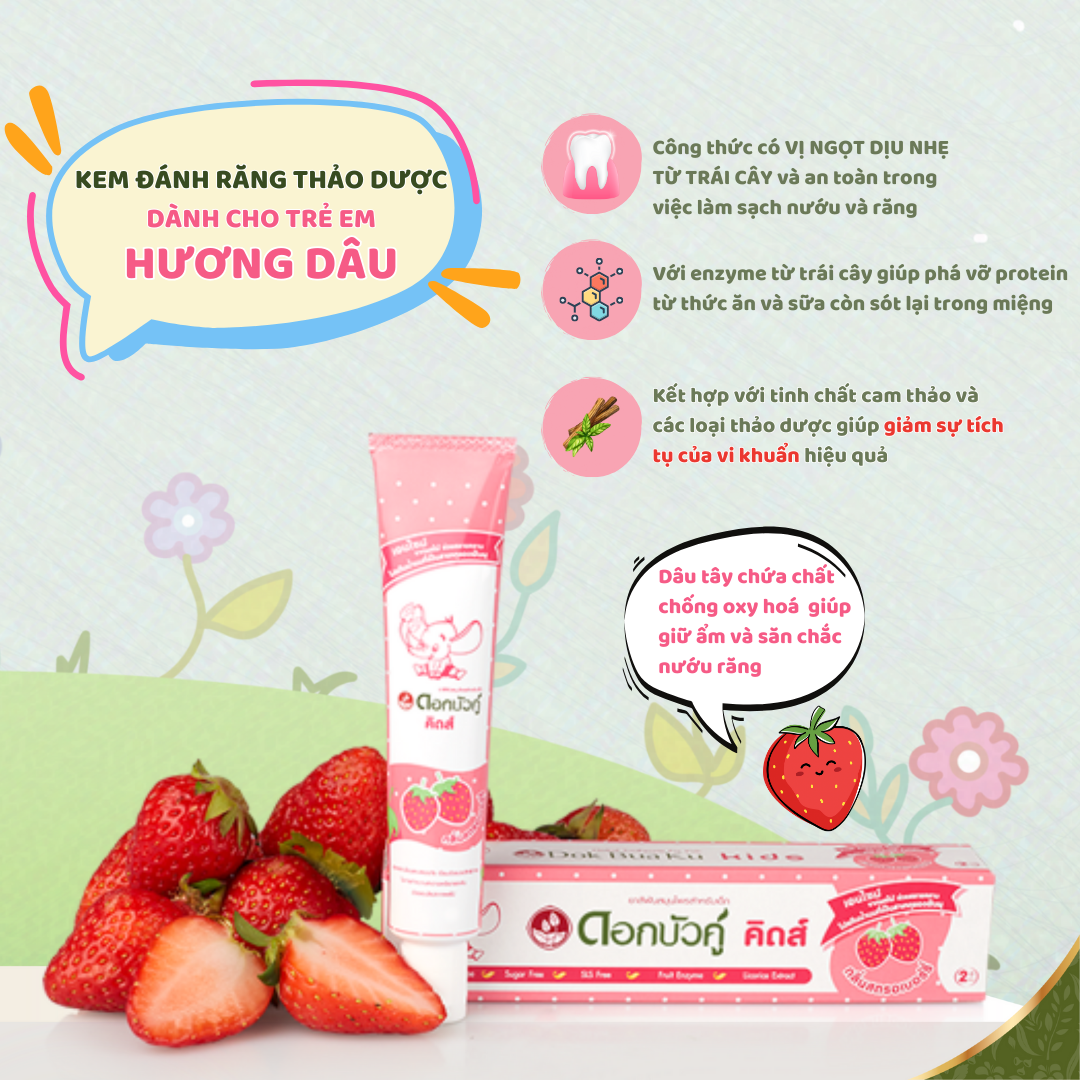 KEM ĐÁNH RĂNG THẢO DƯỢC DỊU NHẸ - AN TOÀN CHO BÉ DOKBUAKU KIDS HƯƠNG DÂU