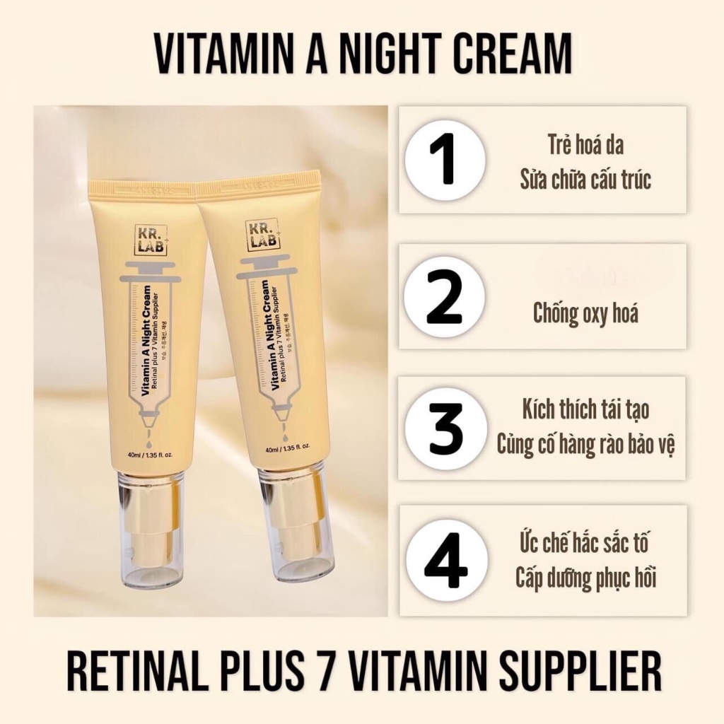 ✨Kem đêm retinal 1.0 Kr.lab Vitamin A night cream Retinal plus 7 vitamin supplier hạn dùng 2026