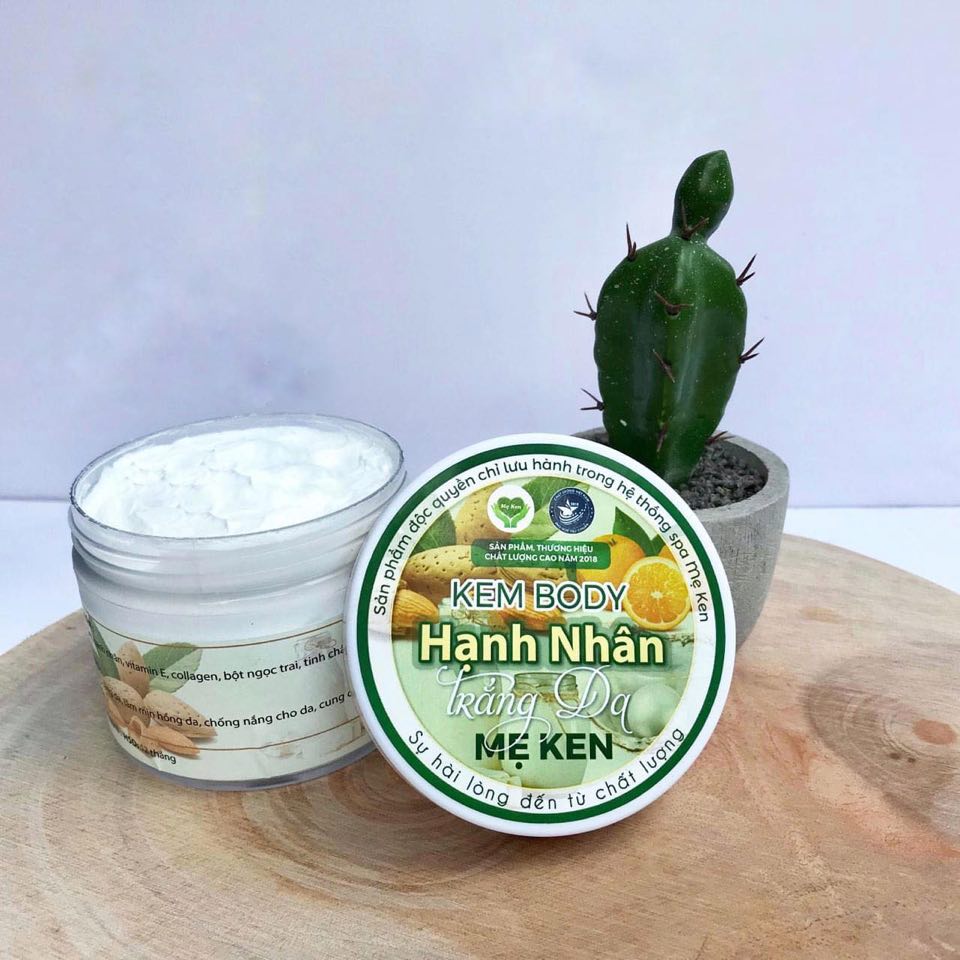 - Kem Dưỡng Body Hạnh Nhân Hảo Hạng Mẹ Ken giúp dưỡng trắng da mềm, mịn. - Chống nắng cho da với chỉ số SPF thấp. - Tạo lớp rào chắn bảo vệ da trước
