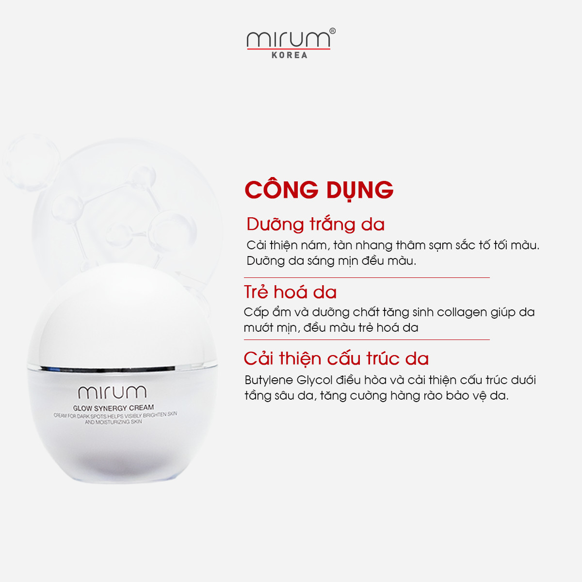 Kem dưỡng trắng da, mờ nám & tàn nhang Mirum 55ml– Mirum Glow Synergy Cream THÔNG TIN SẢN PHẨM Kem dưỡng trắng da, mờ nám & tàn nhang Mirum 55ml