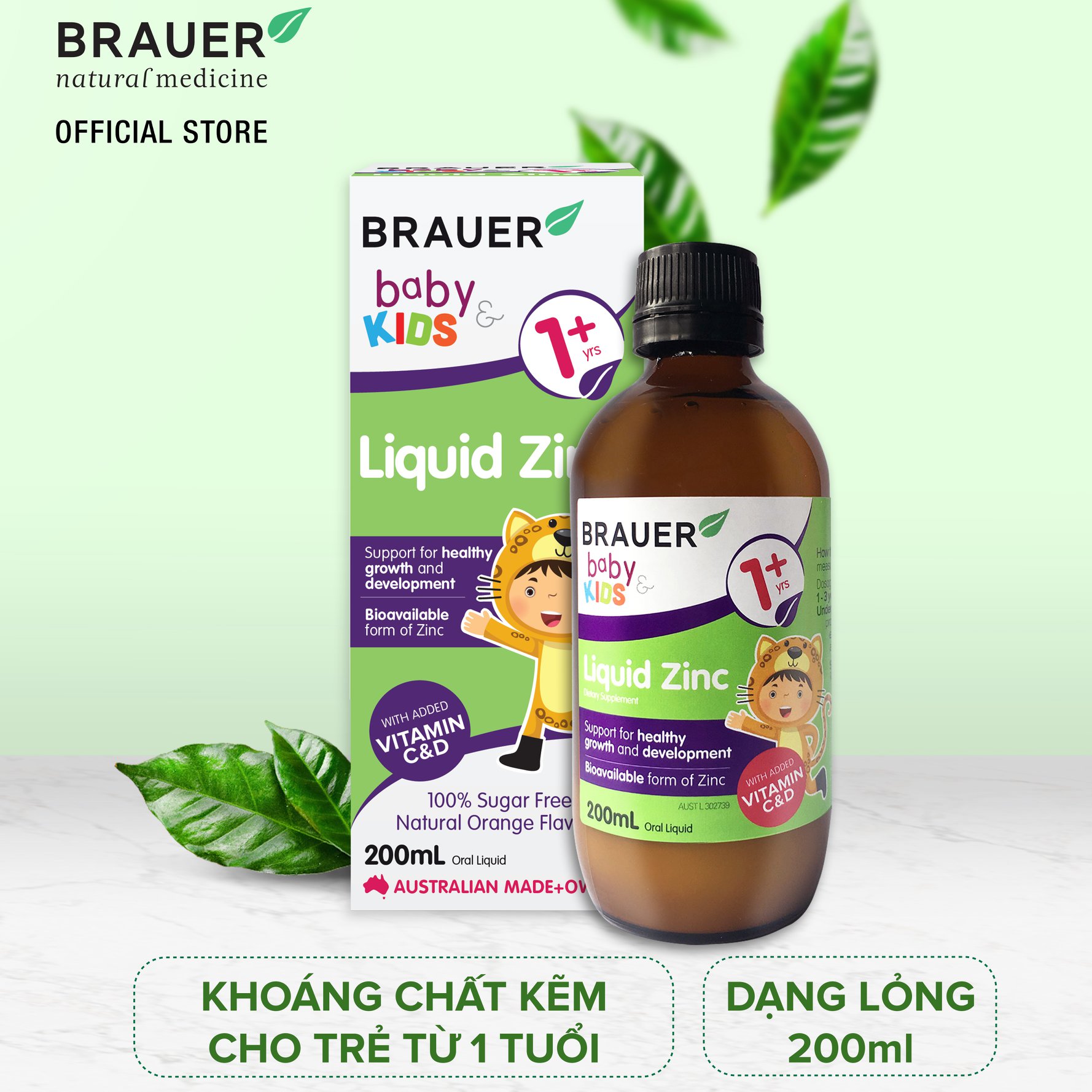 Brauer Kids Liquid Zinc - hỗ trợ cho trẻ biếng ăn từ 1 tuổi (200m) Giới thiệu Sản phẩm Brauer Kids Liquid Zinc là sản phẩm bổ sung kẽm, các vitamin C, D, betacarotene đến