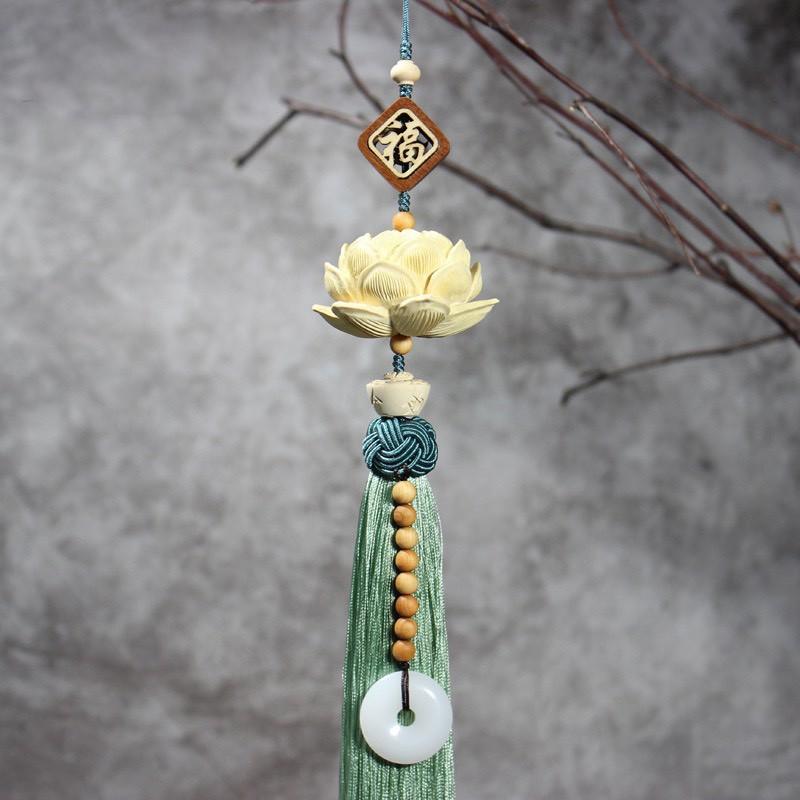 Khánh Liên Hoa Trang Trí Xe Hơi, Dây Treo Sen Gỗ Hoàng Dương Trang Trí Ô Tô Kèm Hộp Đựng Cao Cấp