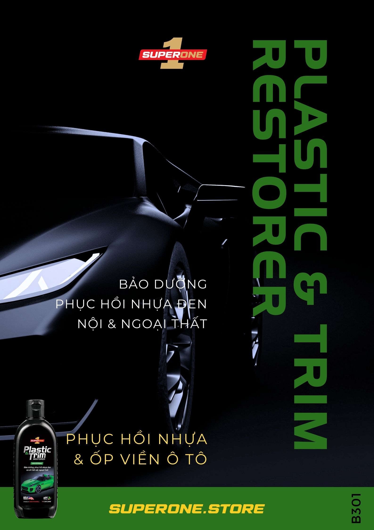 ✨Kem Phục Hồi Nhựa & Ốp Viền Ô Tô SUPERONE Plastic & Trim Restorer - Universal SOUTHWALL B301