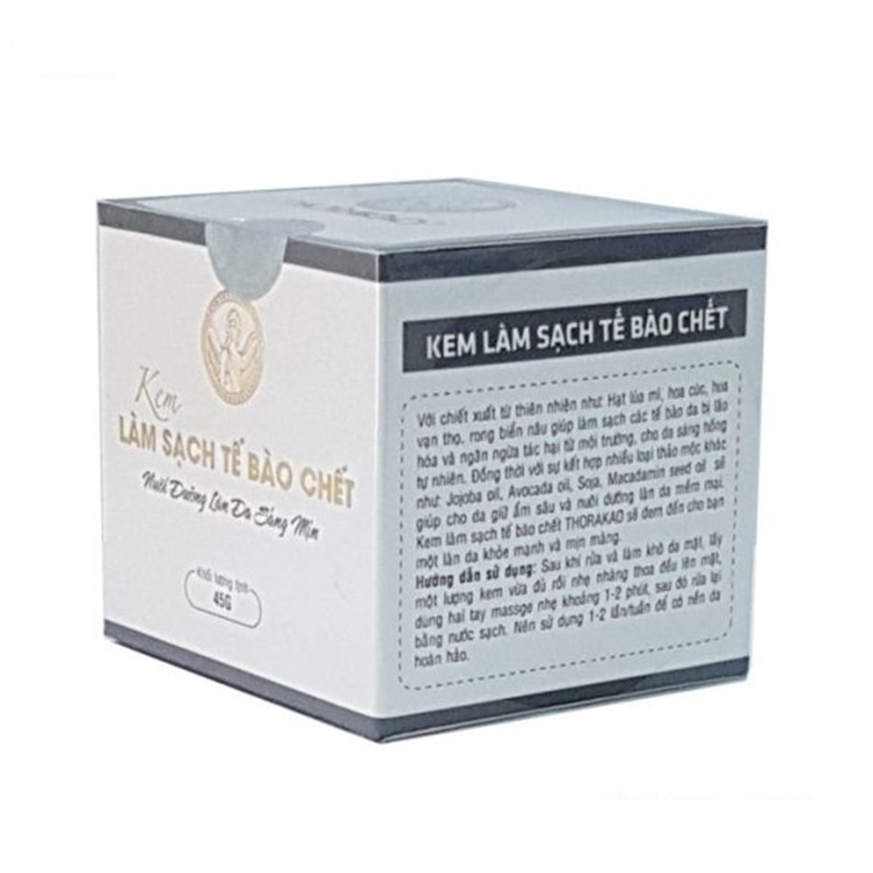Mua tại TiktokKem Làm Sạch Tế Bào Chết Thorakao với chiết xuất rừ thiên nhiên như hạt lúa mì, hoa cúc, rong biển nâu giúp làm sạch các tế bào bị lão hóa và ngăn ngừa tác hại từ môi trường, đem đến cho bạn làn da khỏe mạnh và sáng hồng tự nhiên.