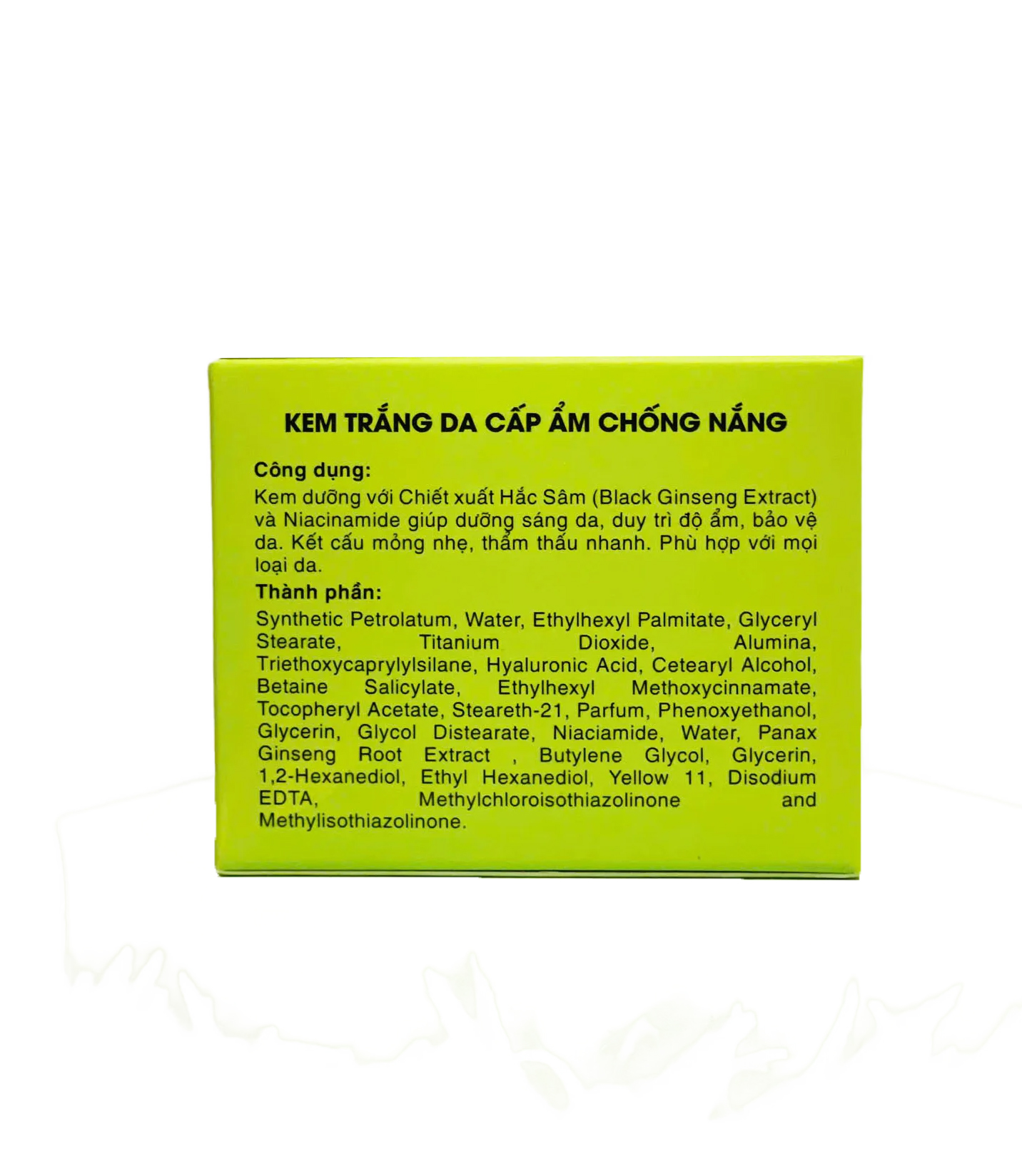 Công dụng: Kem dưỡng với Chiết xuất Hắc Sâm (Black Ginseng Extract) và Niacinamide giúp dưỡng sáng da, duy trì độ ẩm, bảo vệ da… Kết cấu mỏng nhẹ, thẩm thấu nhanh. Phù hợp với