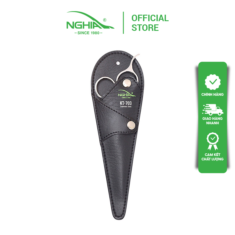 Kéo cắt tóc thép không gỉ cao cấp Kềm Nghĩa KT-703 tặng kèm bao da có thiết kế kiểu dáng phù hợp với bàn tay người Châu Á.Lưỡi kéo sắc mỏng, tinh xảo, độ chính xác cao nên được cắt chính xác gọn gàng không làm tổn thương da khi cắt.