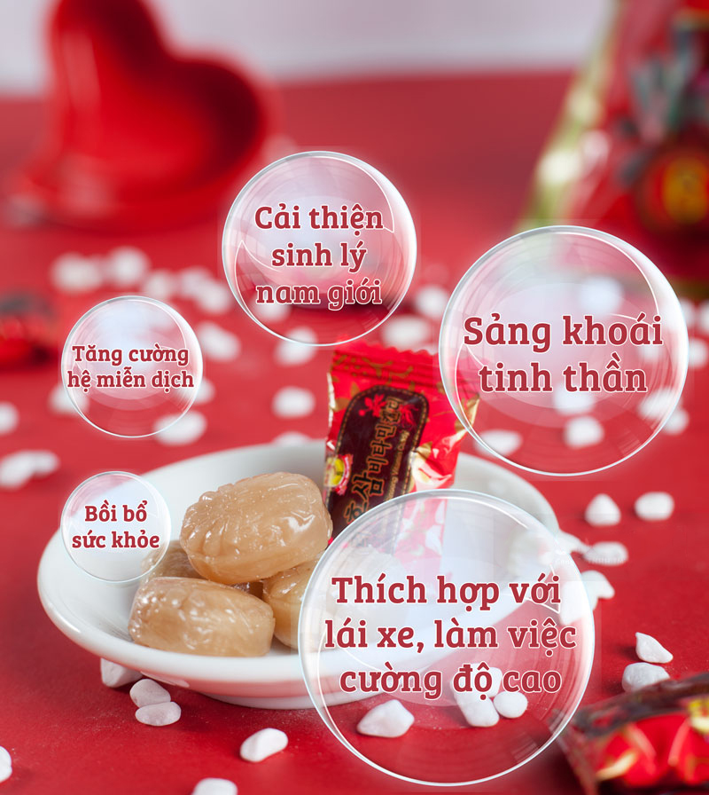 Ngoài ra, kẹo hồng sâm vitamin còn là thực phẩm bổ dưỡng cho những người còi xương, suy dinh dưỡng vì phải làm việc quá sức.