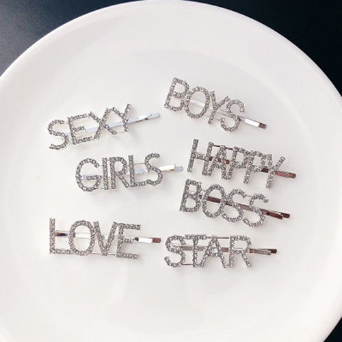 Xuất xứ:Trung Quốc Kiện hàng: gồm 6 cây kẹp Tình trạng: mới 100% Chất liệu: Kim loại Phong cách: Trẻ Trung Kẹp tóc mái dễ thương đính hột chữ MIN/ CHA/ WANG Hàng có sẵn