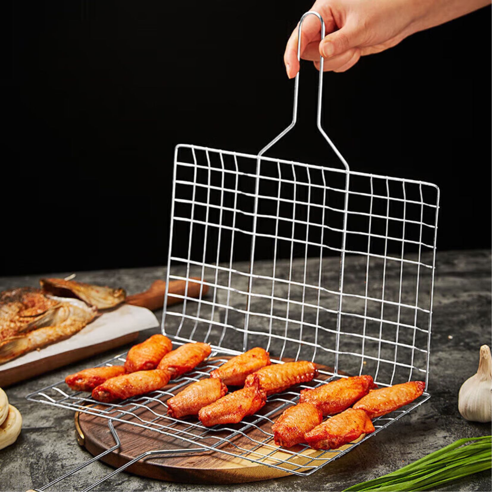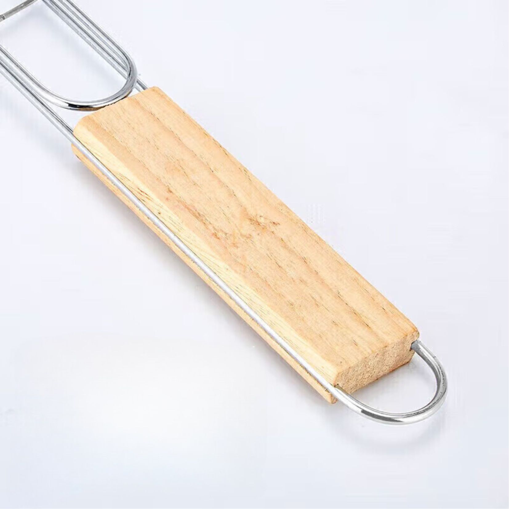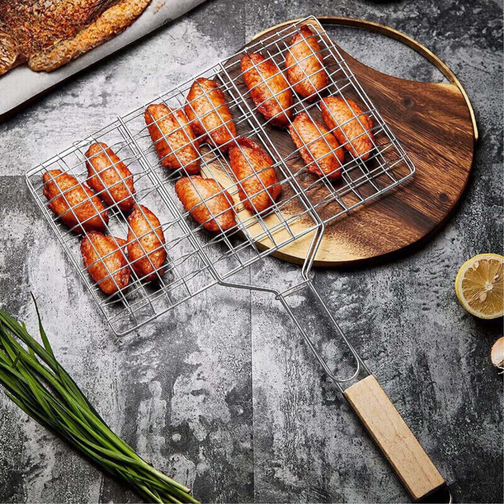 Kẹp nướng vuông có tay cầm gỗ cách nhiệt, nướng cá, kẹp nướng, lưới nướng, kẹp rau củ, nướng thịt
