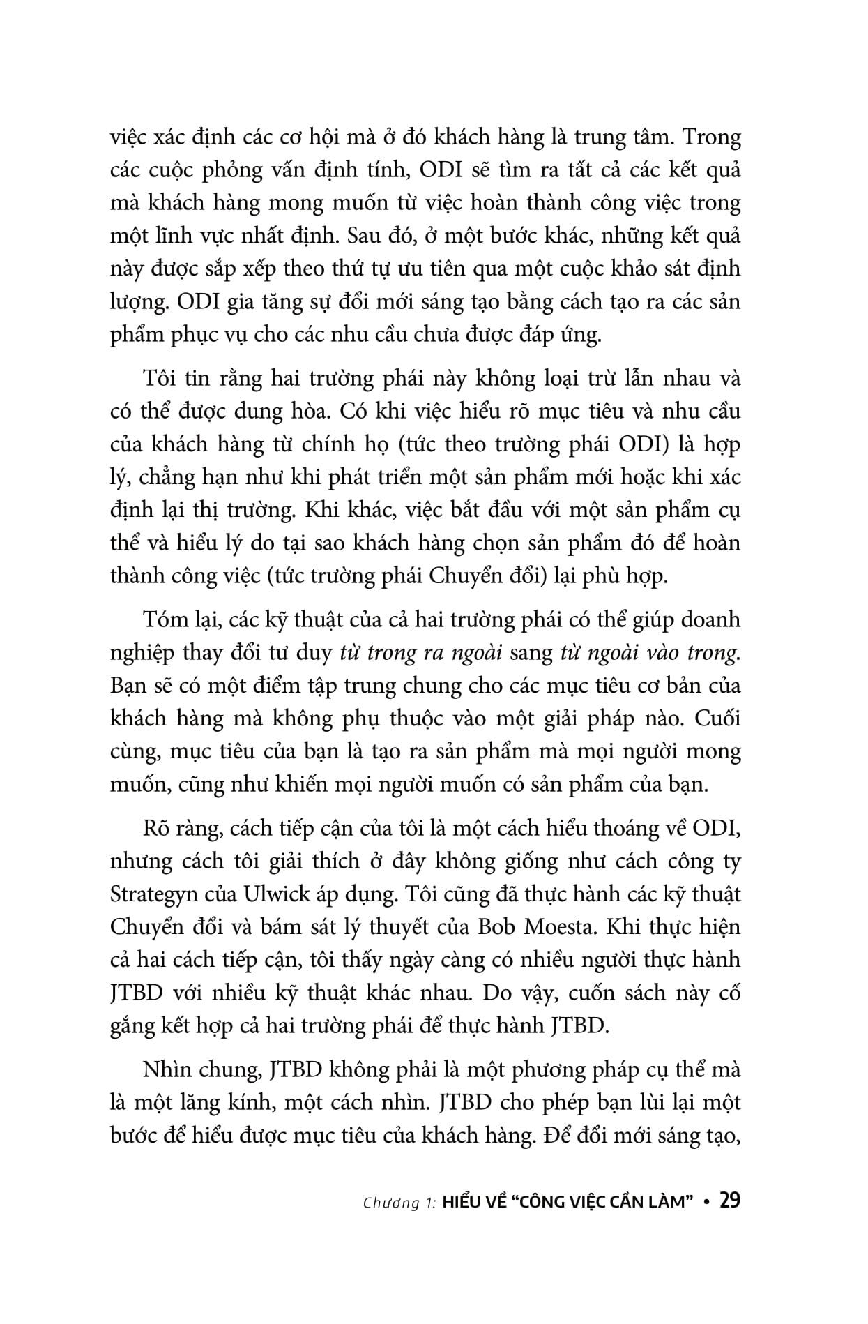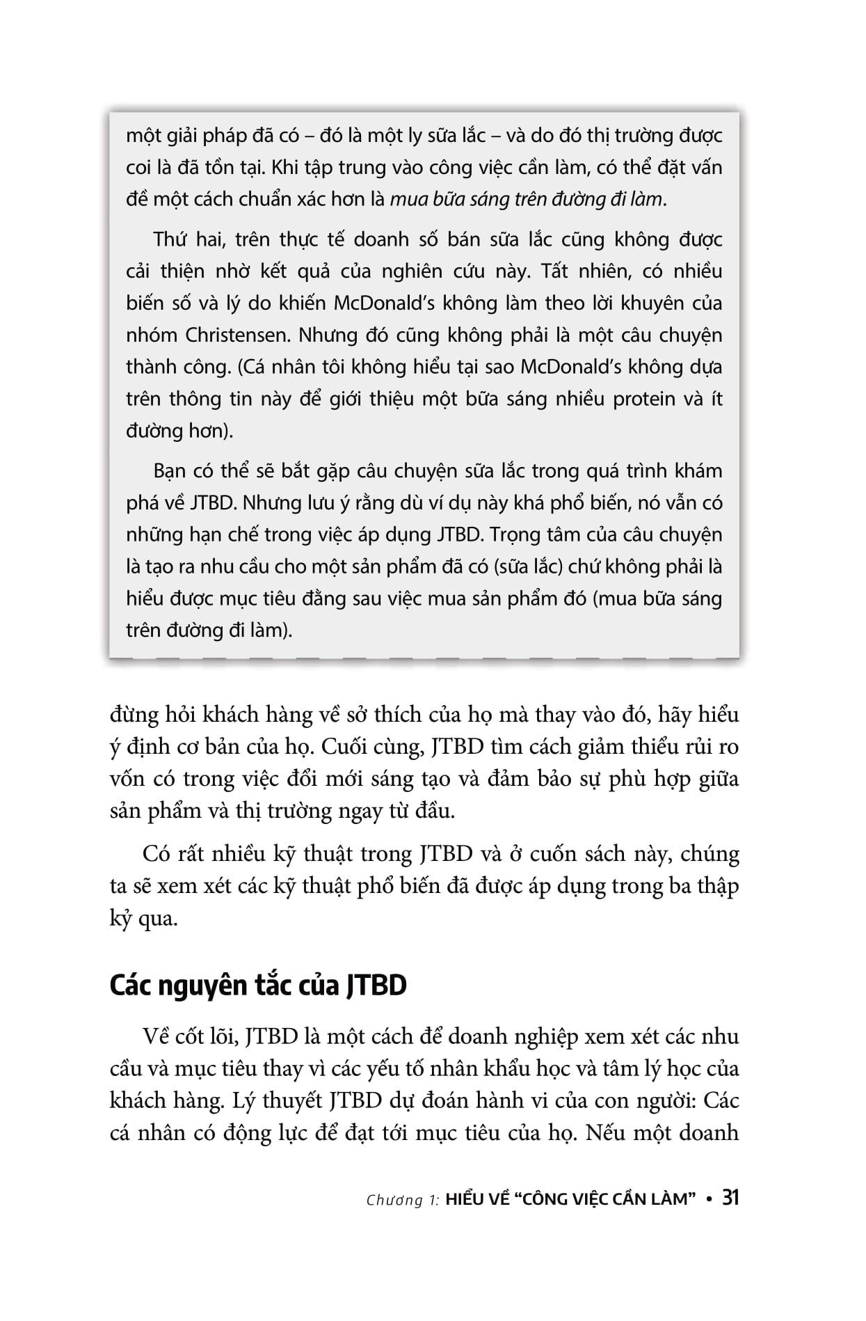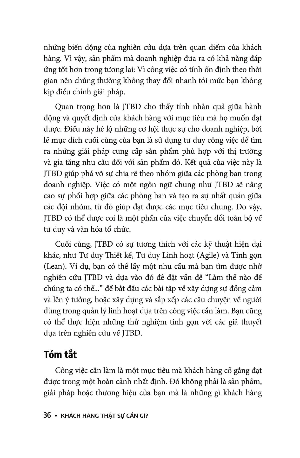 Khi viết cuốn sách này, tác giả Jim Kalbach cũng có nhận thức sâu sắc về những thiếu sót của JTBD. Giống như bất kỳ phương pháp nào khác, JTBD không phải giải pháp cho mọi vấn đề mà sẽ có sự đánh đổi khi thực hành chúng. Khi bạn đọc cuốn sách này với tư duy phản biện, bạn nên lưu tâm những lợi ích sau đây của JTBD.