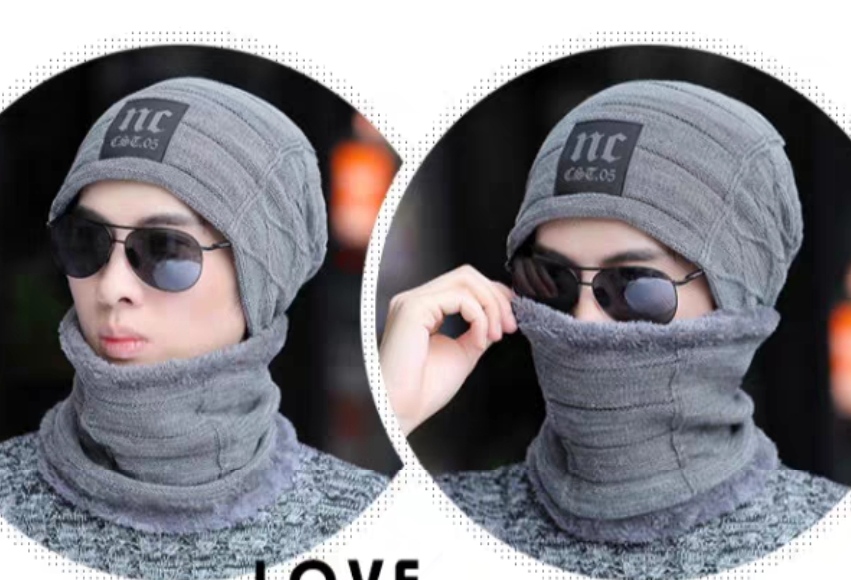 PVN55244 Mũ len cho nam kèm khăn choàng cổ mùa đông giữ ấm tốt