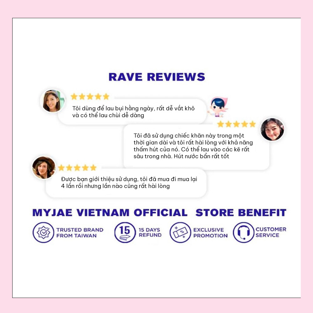 Khăn lau đủ mọi thứ trên đời nên khá tốn vì thay thường xuyên Khăn được feedback tốt, mềm mịn, thấm nước siêu tốt và vắt kiệt siêu nhanh khô, nhà ai cũng cần 1