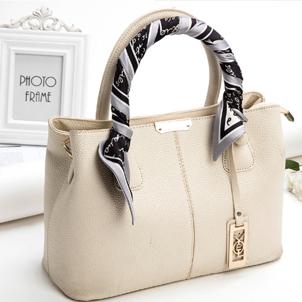 - Cách sử dụng khăn lụa quấn túi: +Cách 1: Buộc khăn bên hông túi +Cách 2: Quấn khăn lên quai túi